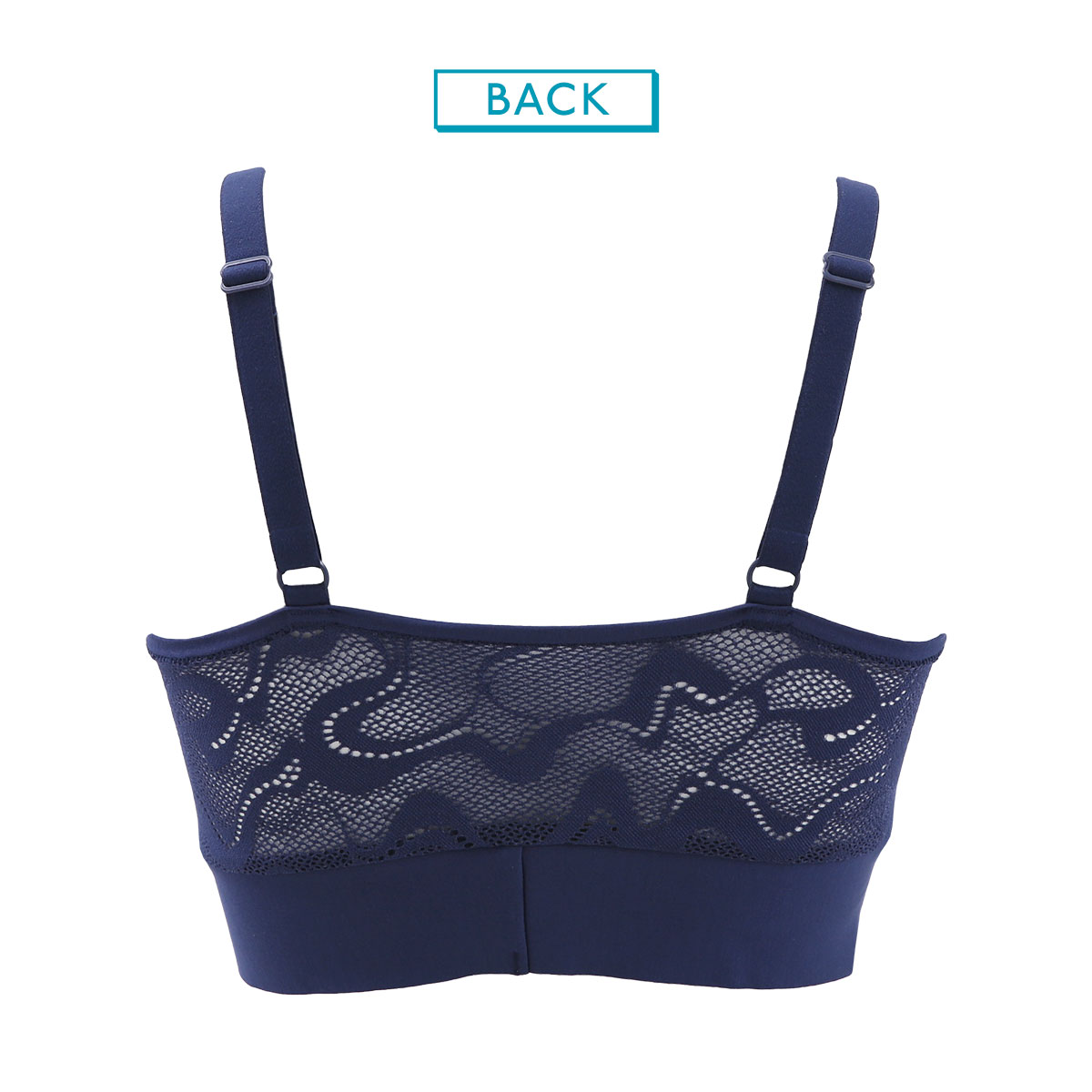 | 仕 様 | ・ホックなし、かぶりタイプ ・パッド取外し:不可 ・ワイヤーなし ・サイドボーン:なし ・透け感:バックにあり ・ストラップ調整:可能 |