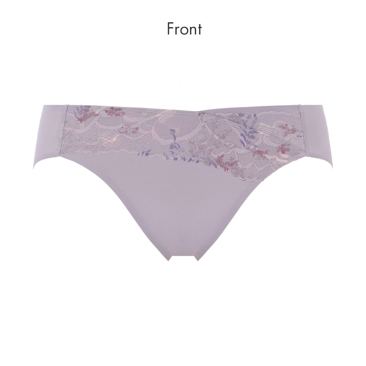 月光に照らされた野花が咲く大草原をイメージしたノスタルジックな雰囲気の花柄プリントレースをフロント上部に使用しています。