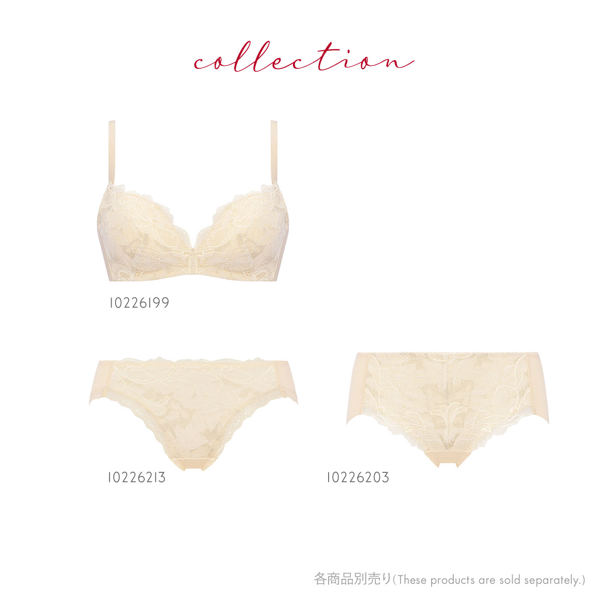 こちらのアイテムの他に同シリーズにブラジャー1型、ショーツ1型があり、コーディネートで着用できます。