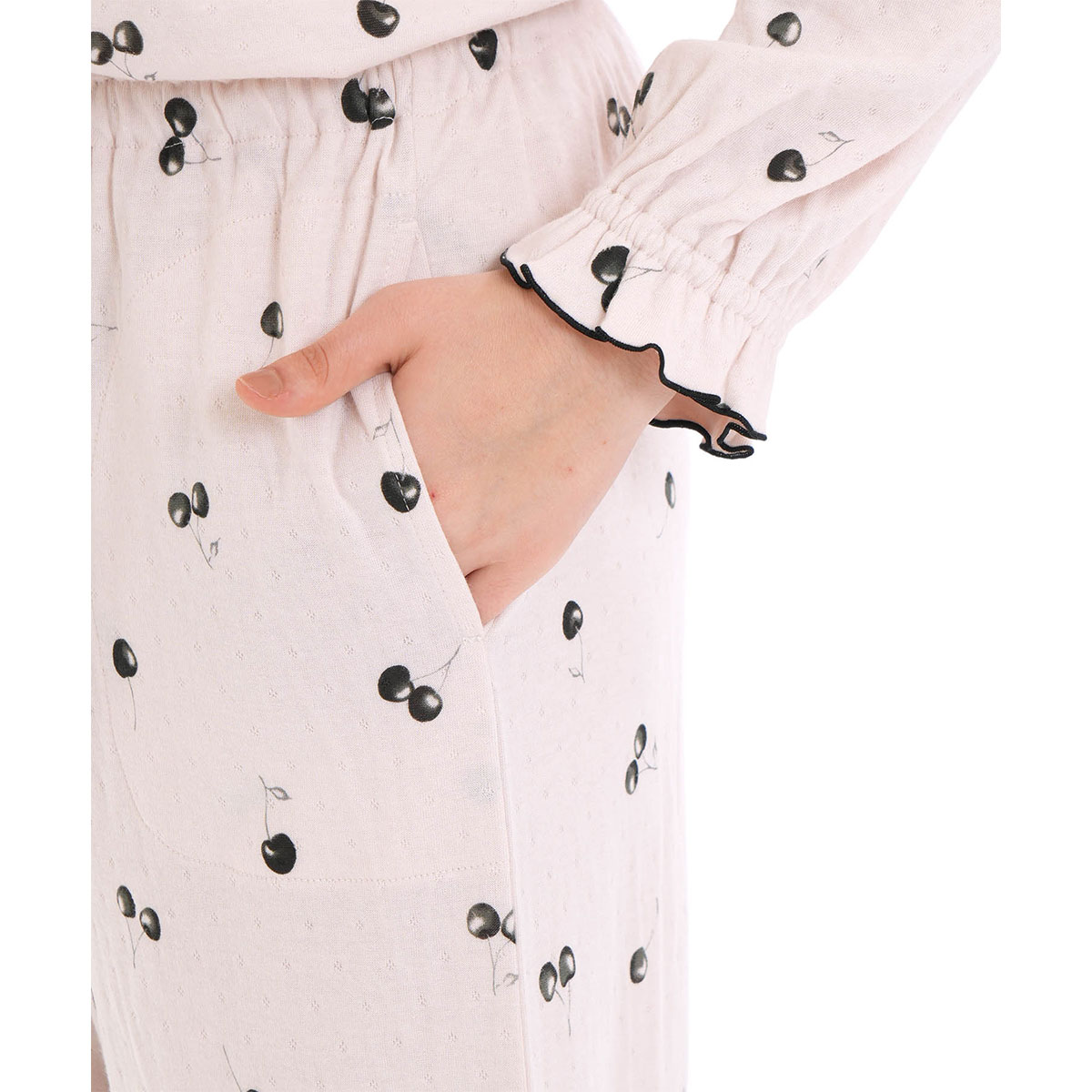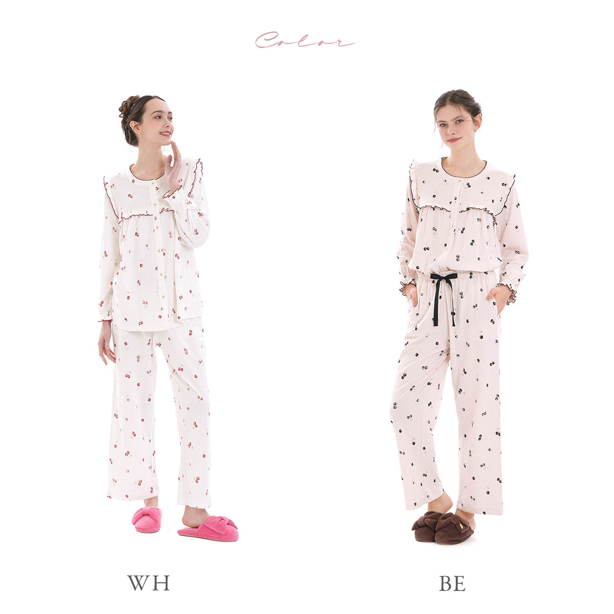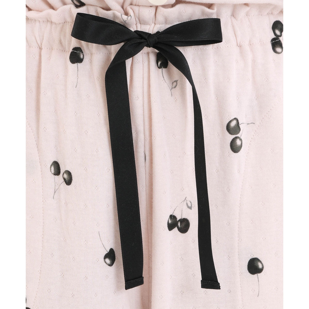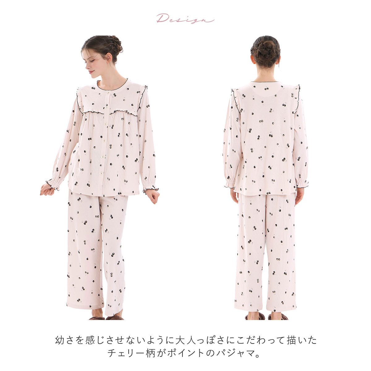 幼さを感じさせないように大人っぽさにこだわって描いたチェリー柄がポイントのパジャマ。