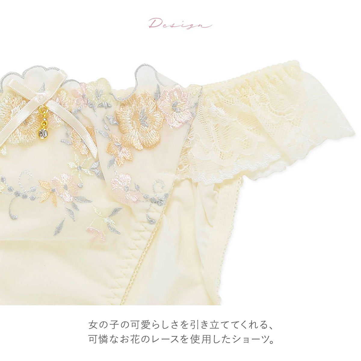 女の子らしさを引き立てる可憐な花柄レースを使用したショーツ
