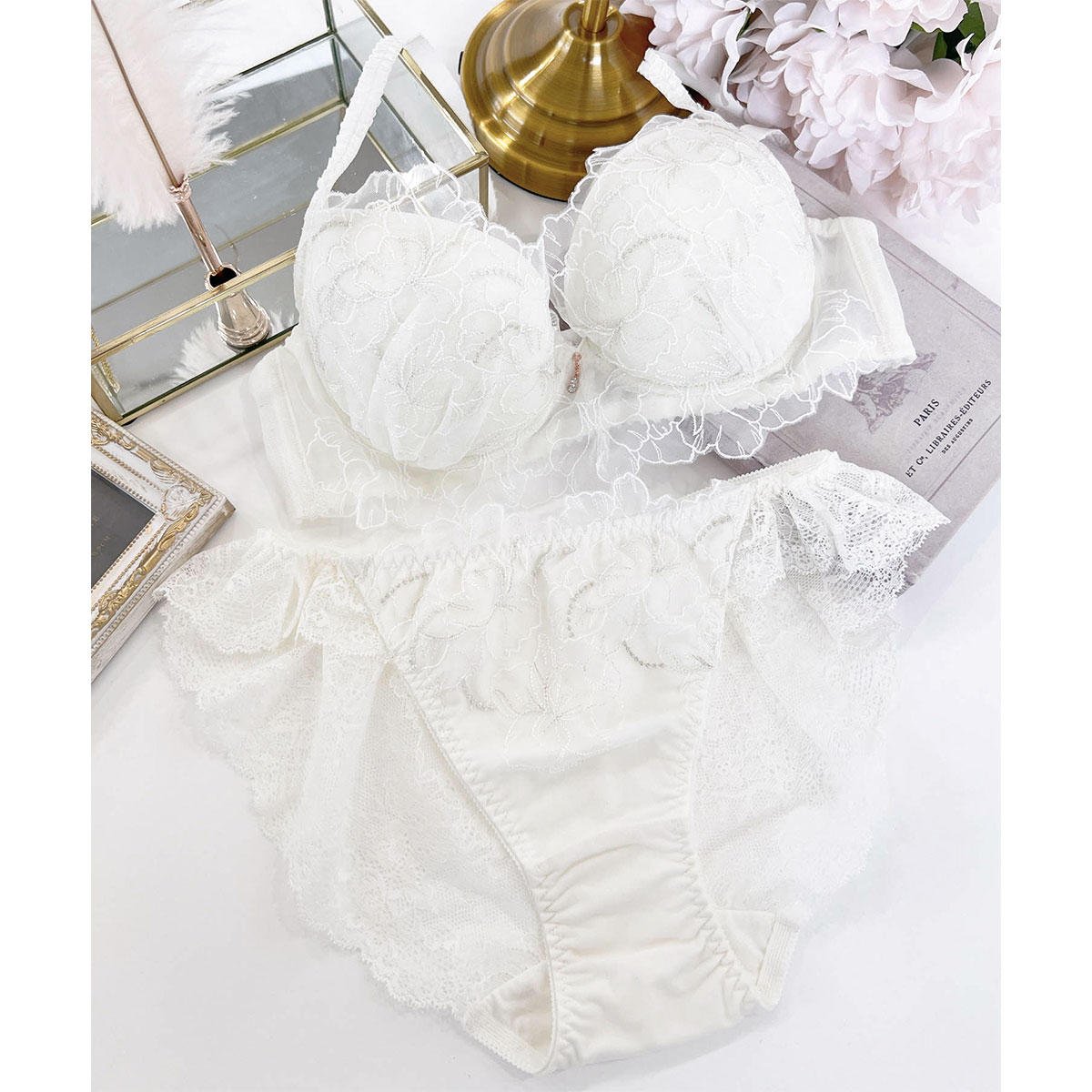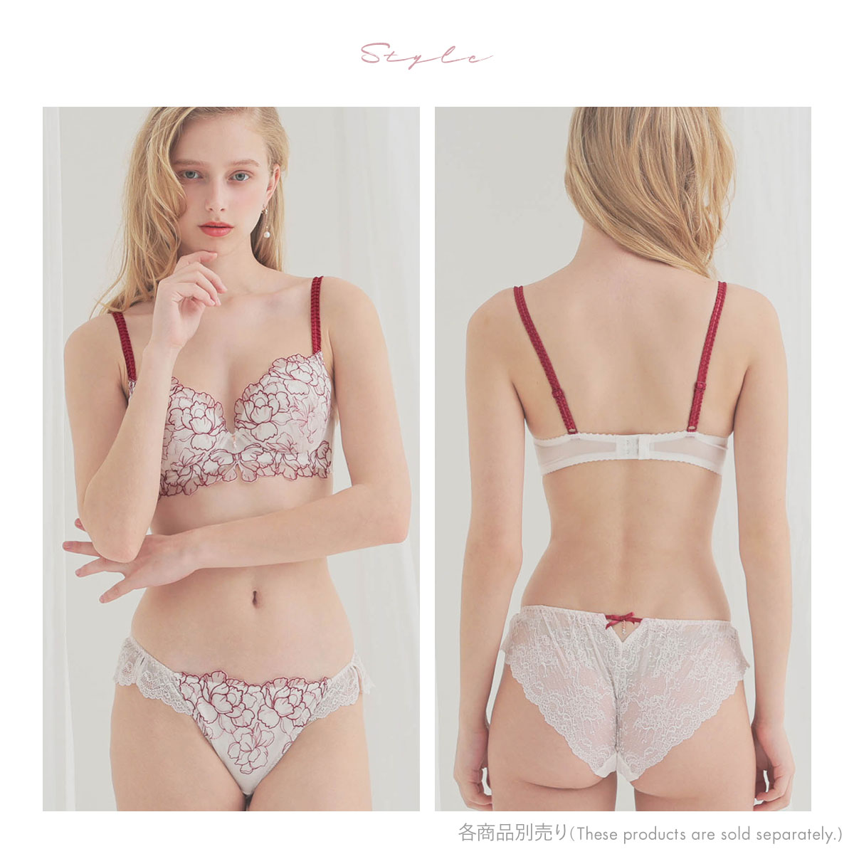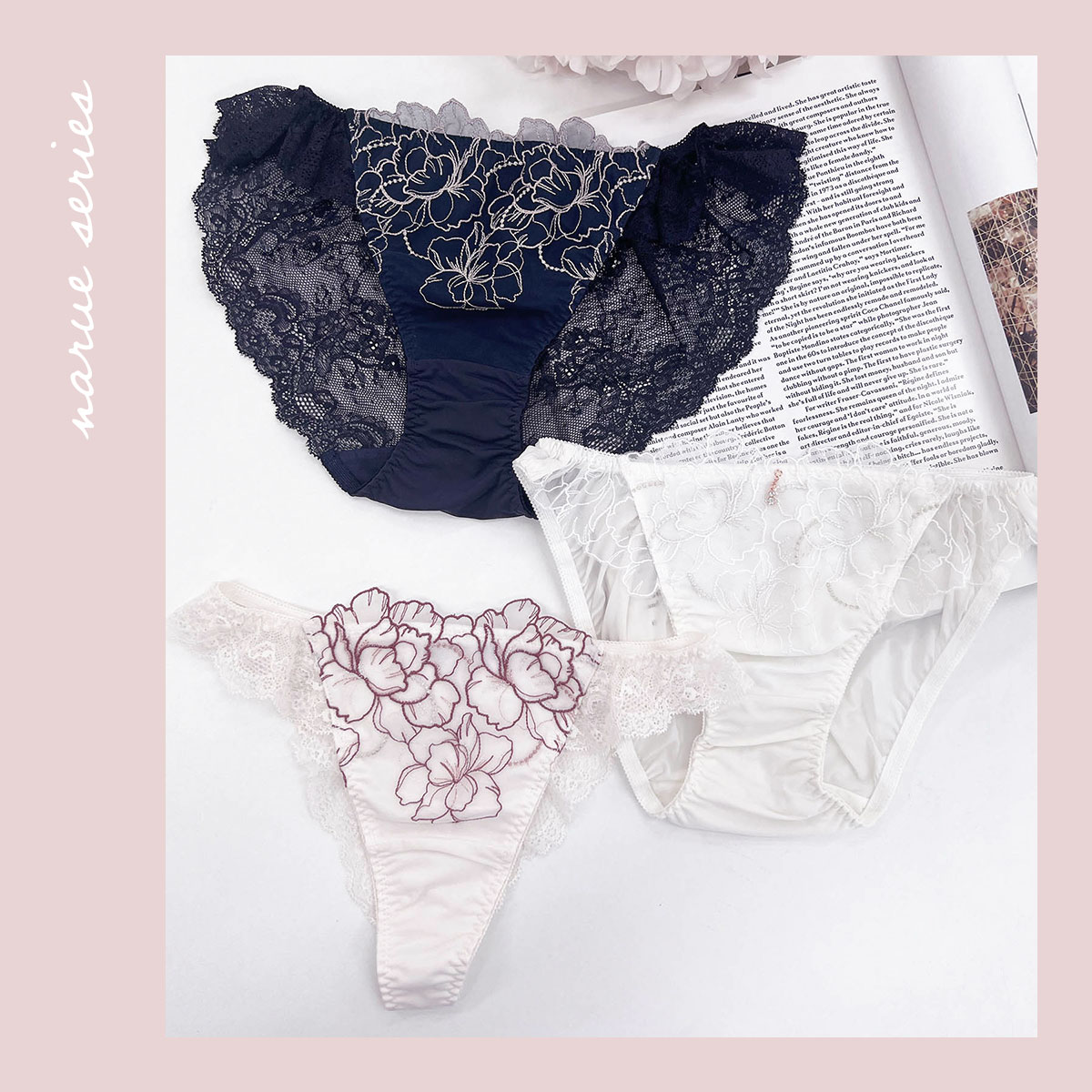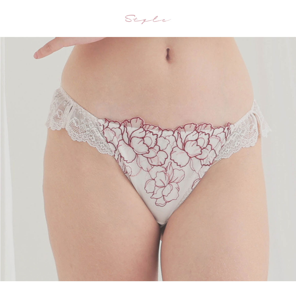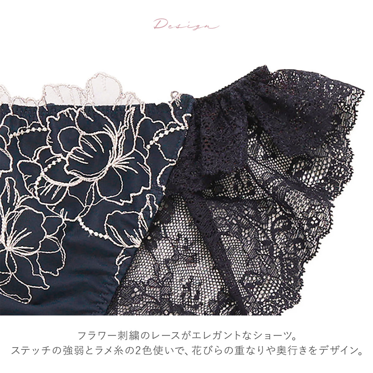 レース全体にラメ糸をあしらい、動くたびにキラキラと輝くジュエリーのような印象に仕上げた、フラワー刺繍のレースがエレガントなショーツ。