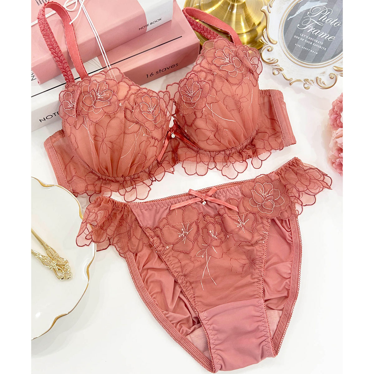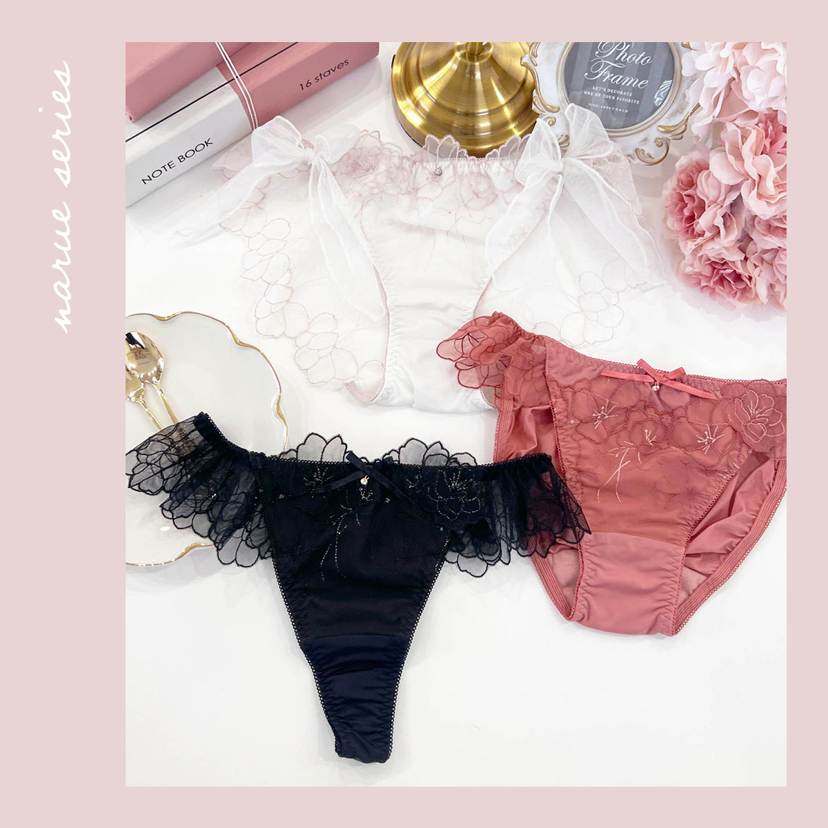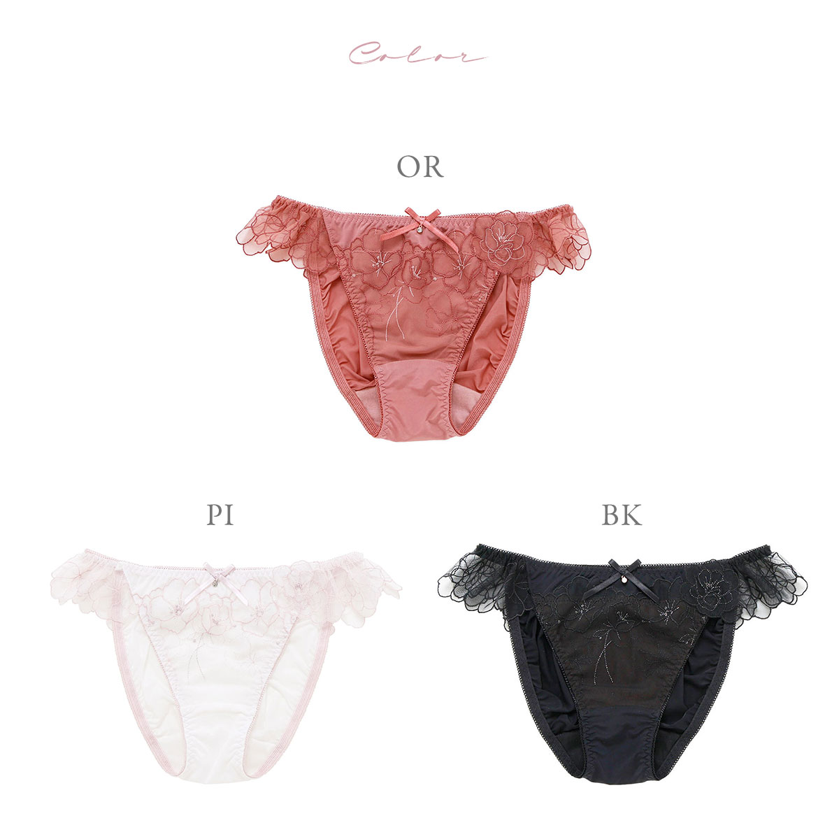 ローズのアップリケレースをのせた、ふんわりフェミニンなデザインのショーツ。ほのかに煌めくラメ糸がさり気なくも華やかさをプラスしています。