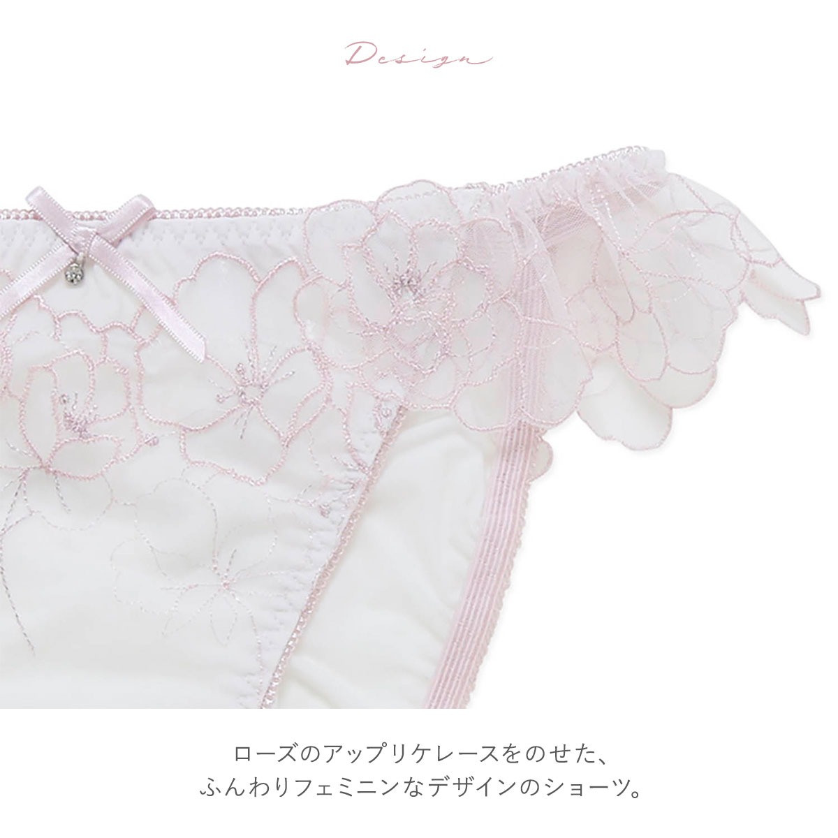ローズアップリケをふんわりあしらったフェミニンなショーツ