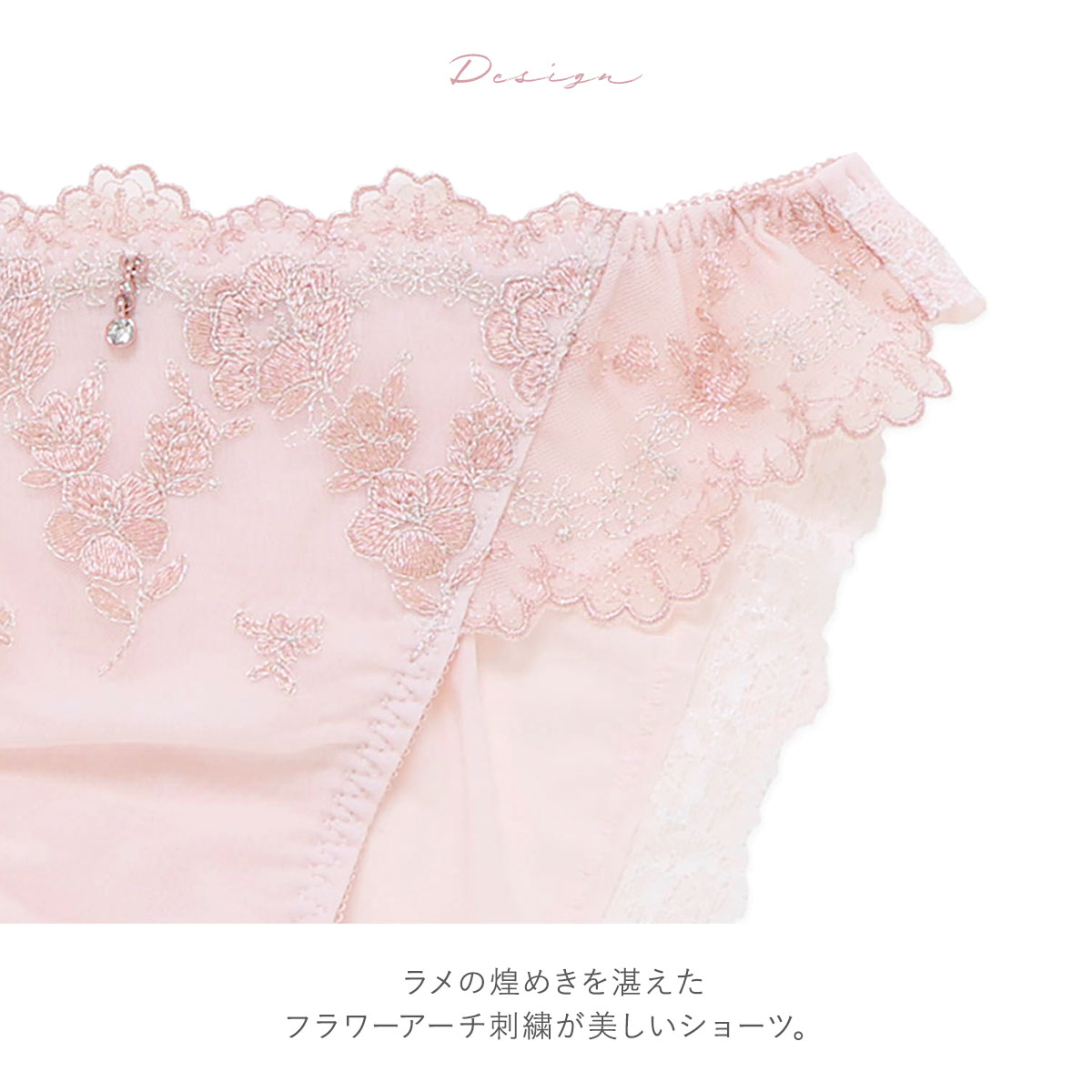 煌めくフラワーアーチの刺繍が華やかでエレガントなショーツ