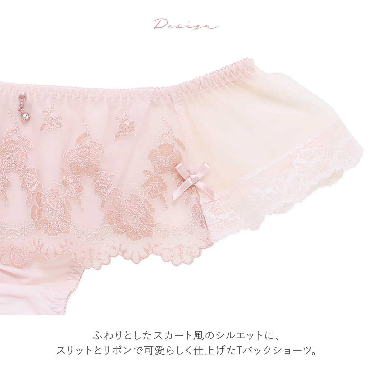 ふんわりスカート風のレース使いが可憐な表情を演出するTバック