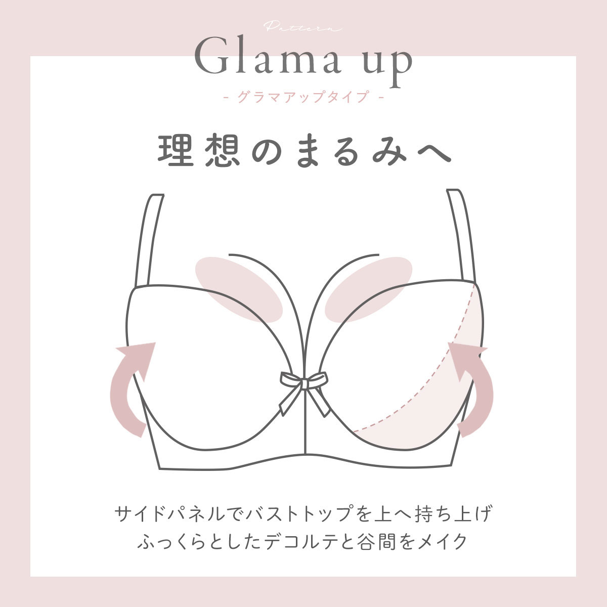 グラマーサイズ専用のカップパターンは、グラマーサイズ専用の丸くてやや浅めのものを採用。サイドにステッチを施した、脇のボリュームが出にくくすっきり見える仕様です。