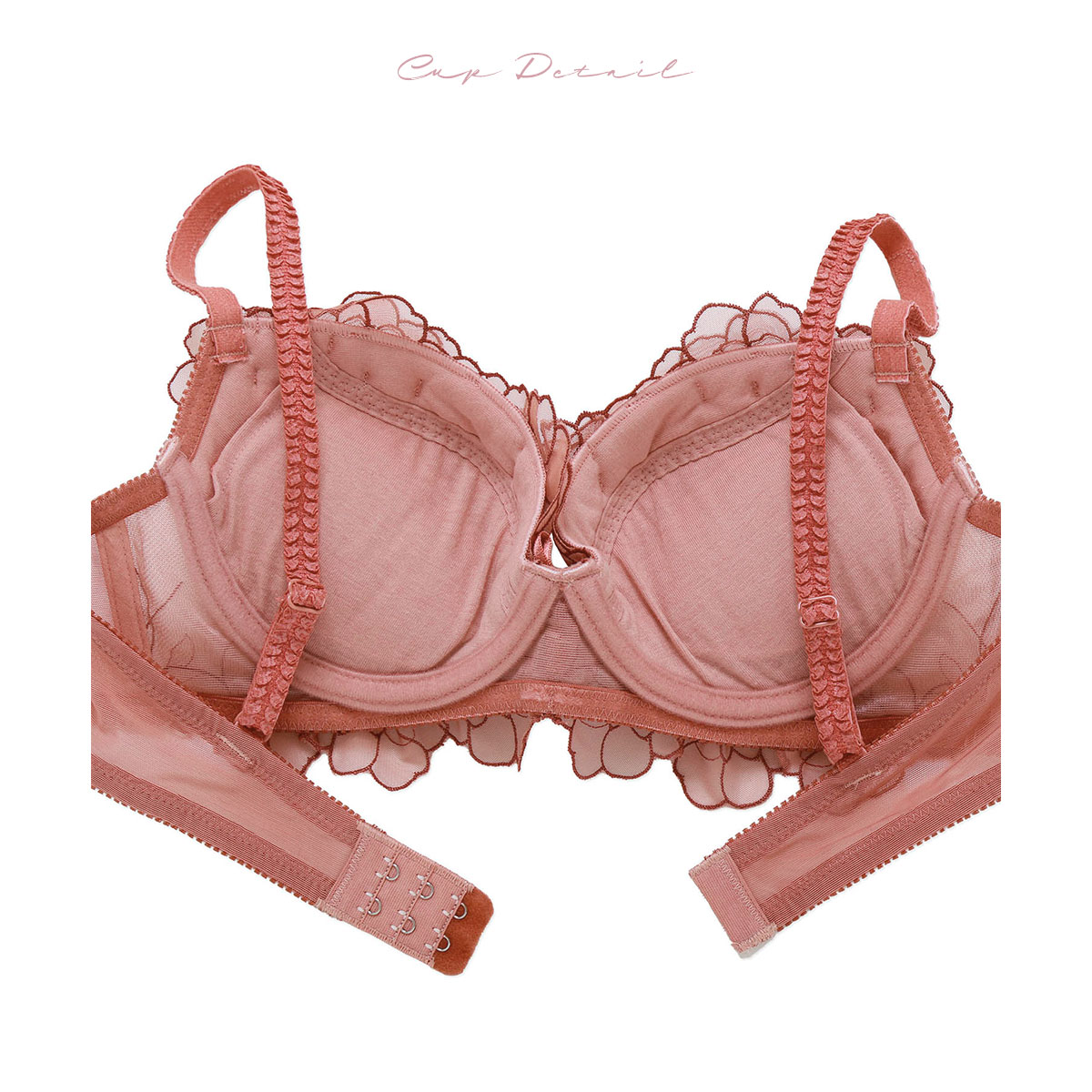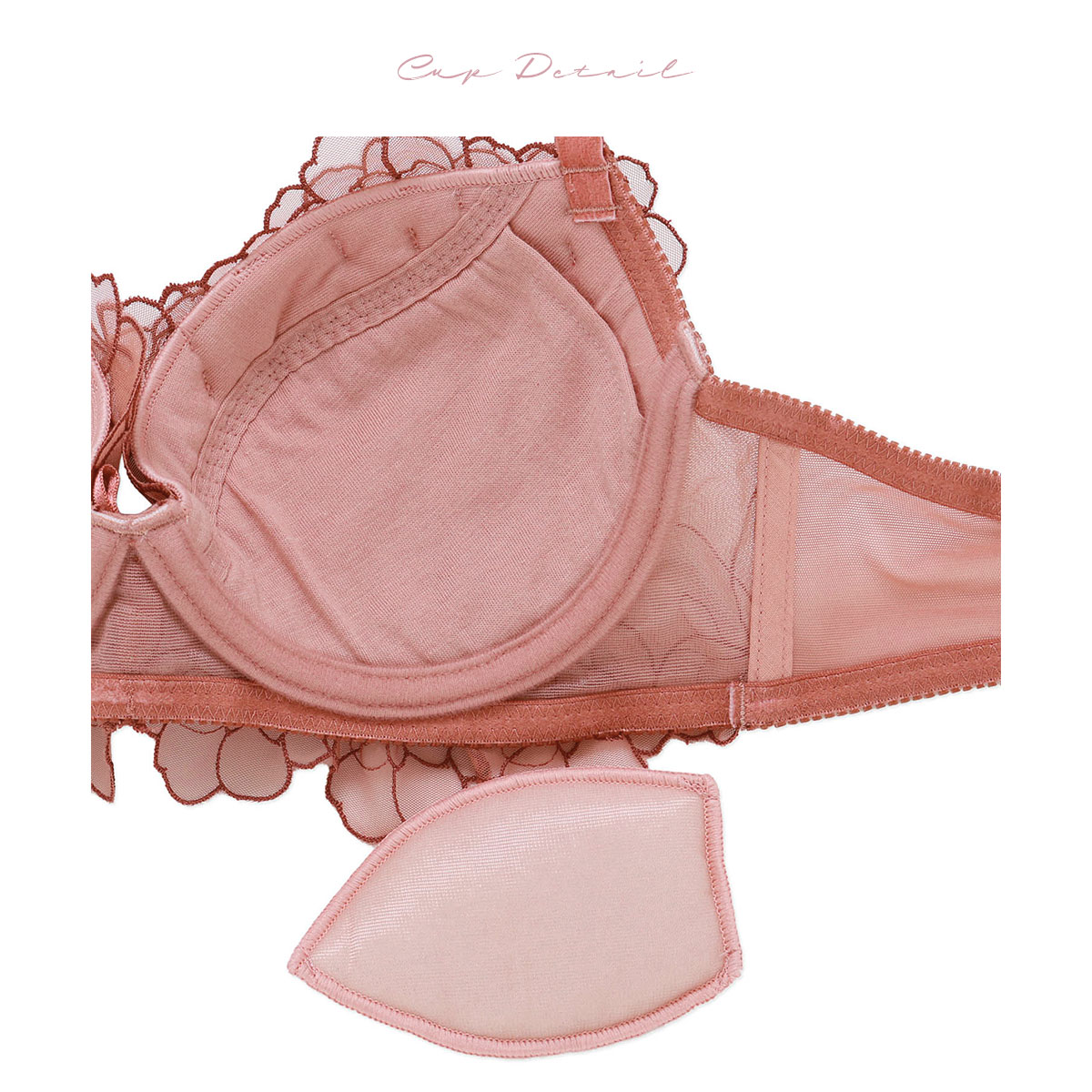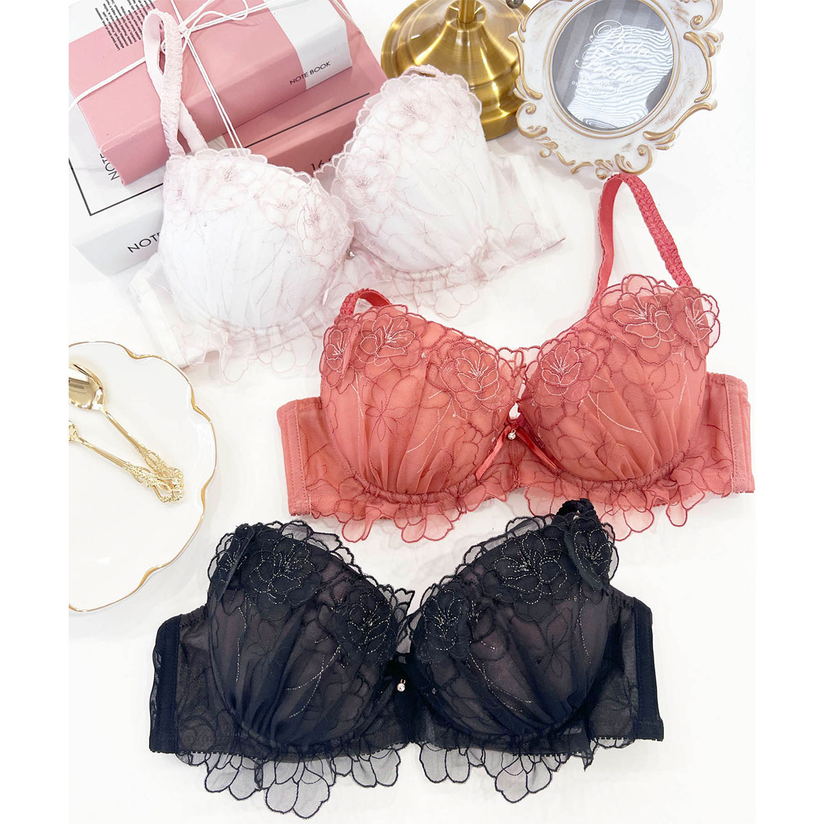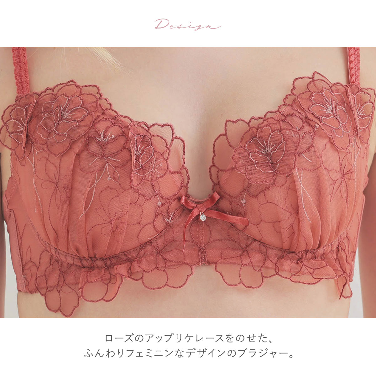 ローズアップリケをふんわりあしらったフェミニンなブラジャー