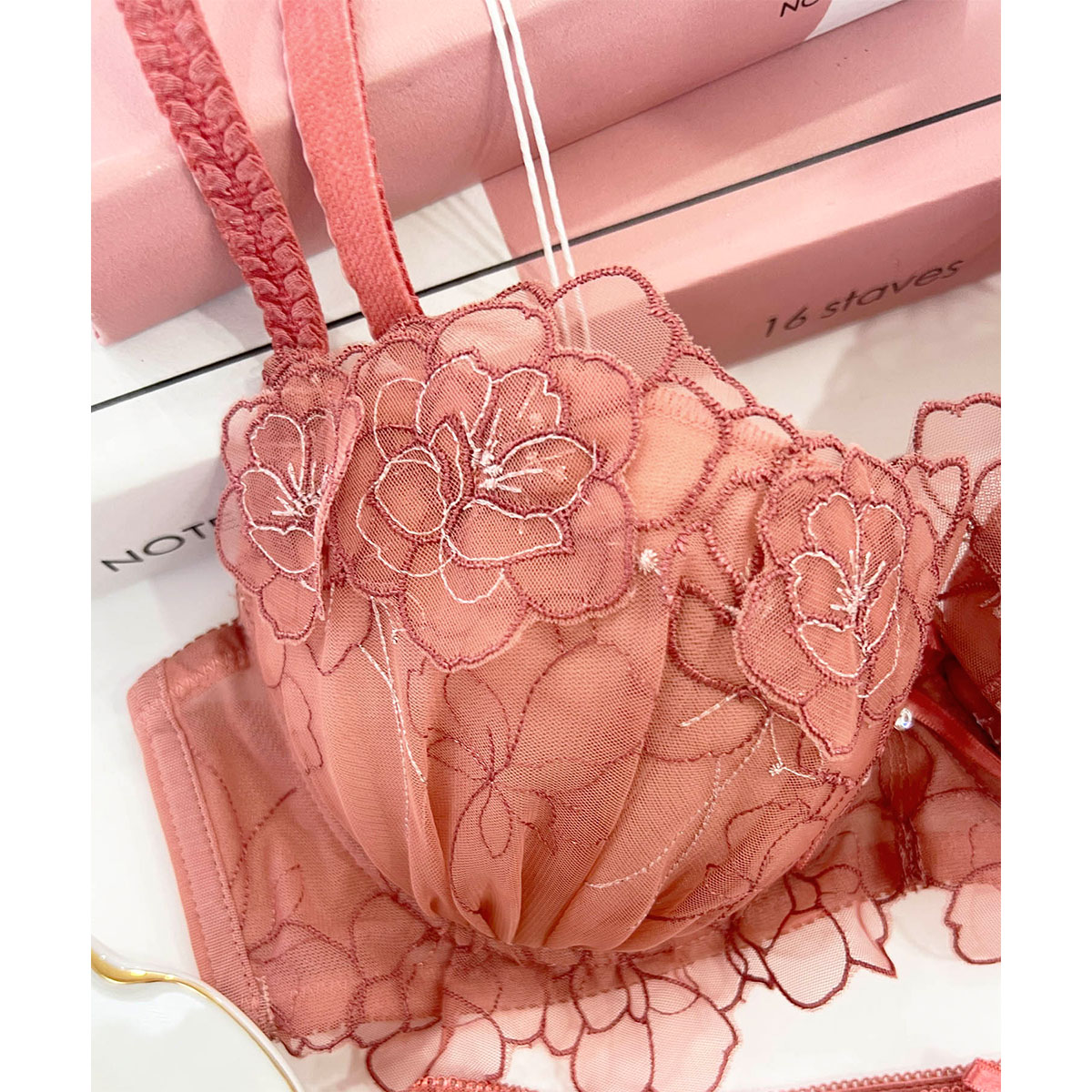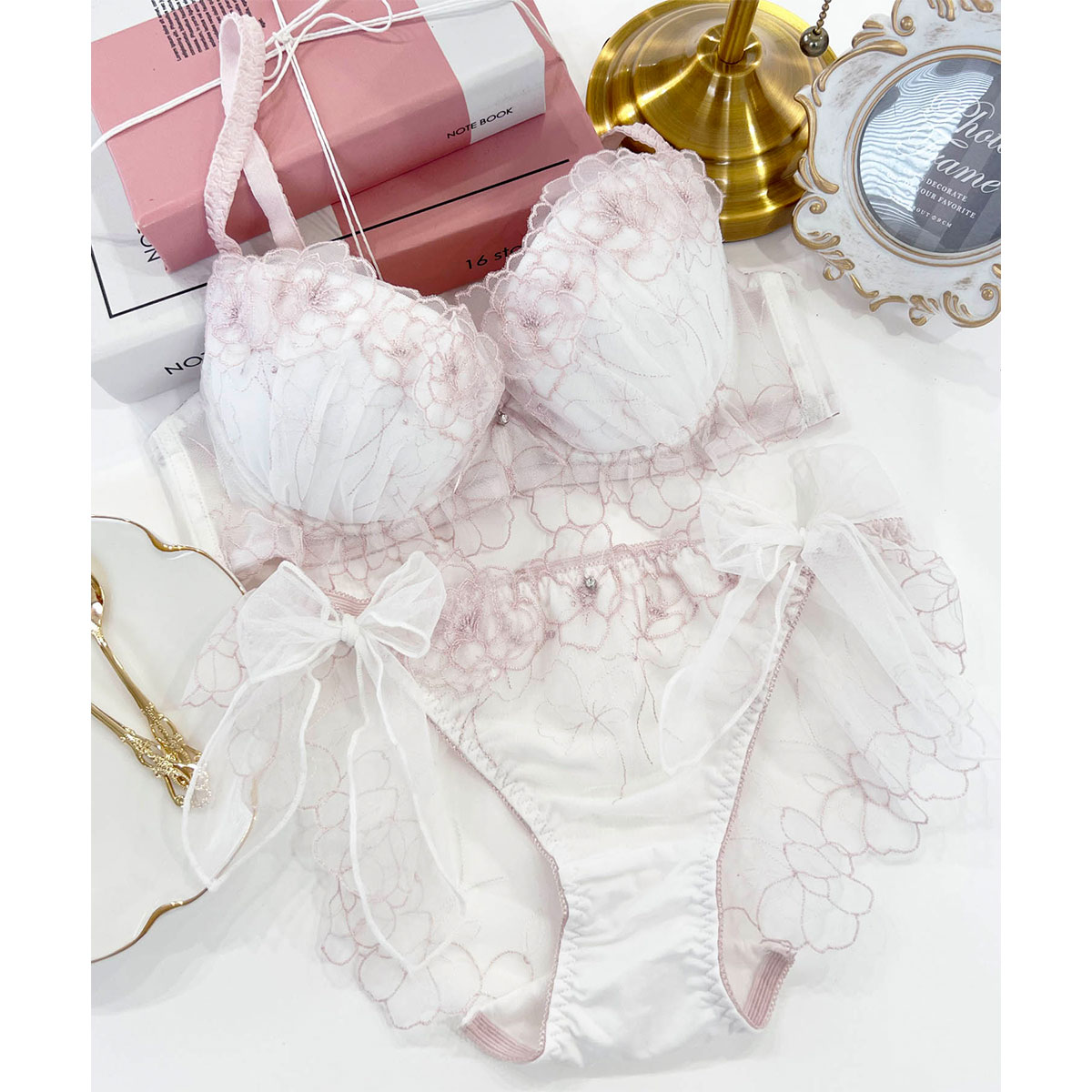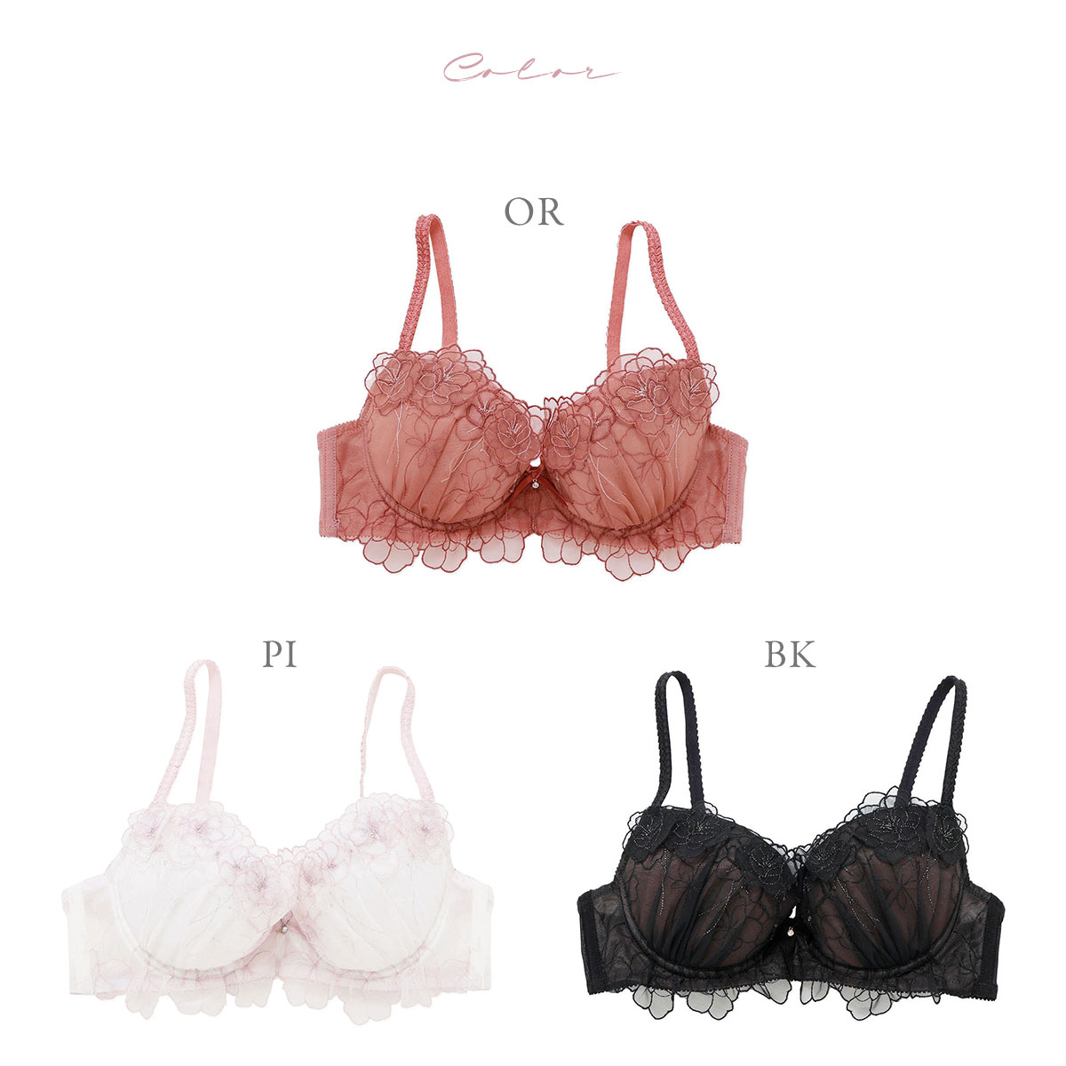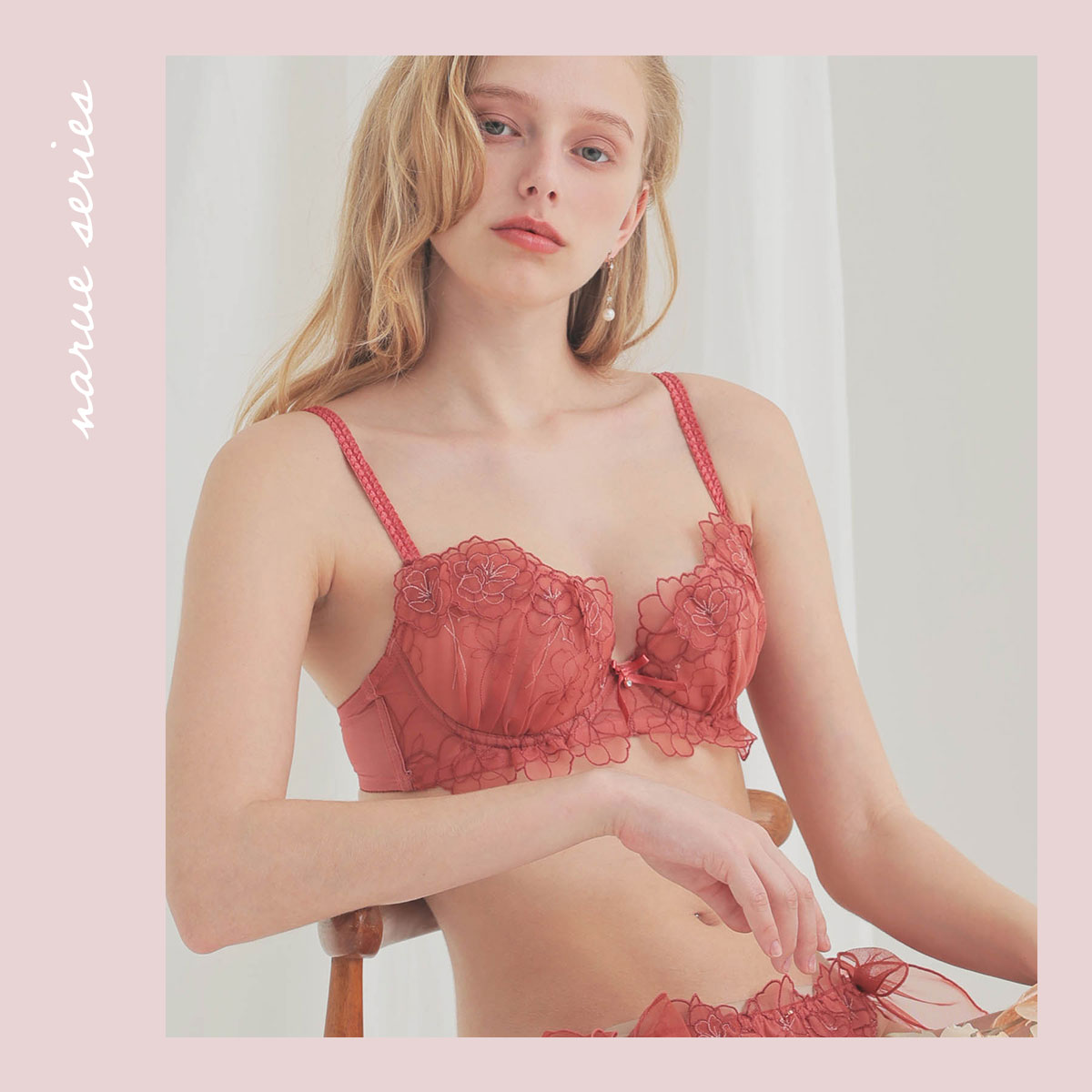 ローズアップリケをふんわりあしらったフェミニンなブラジャー