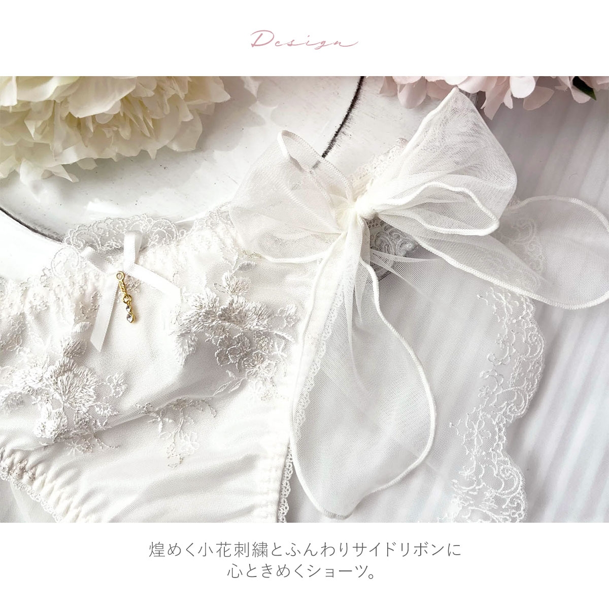 煌めく小花刺繍に心ときめく総レースサイドリボンショーツ