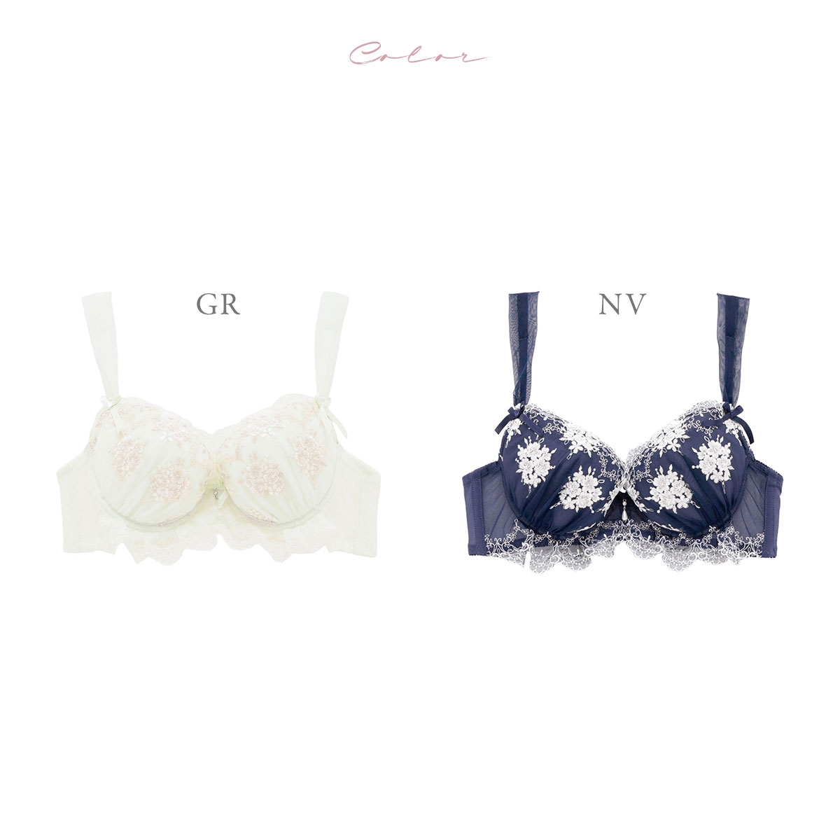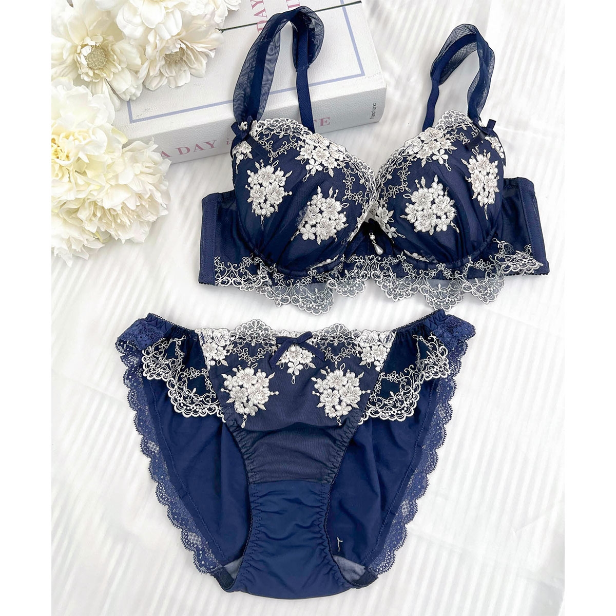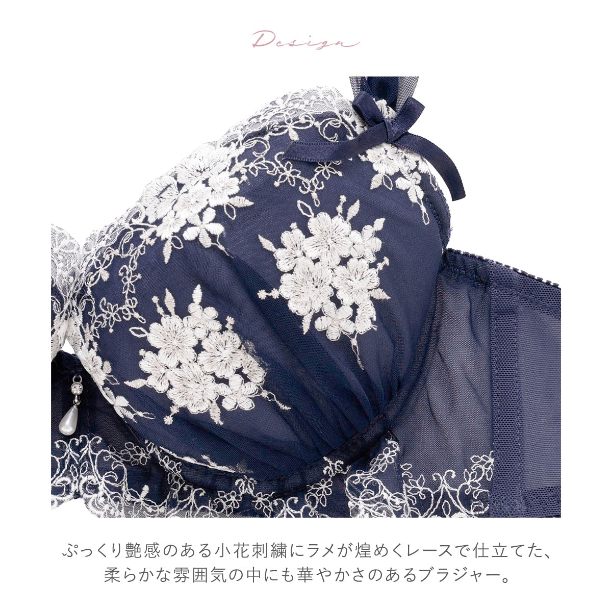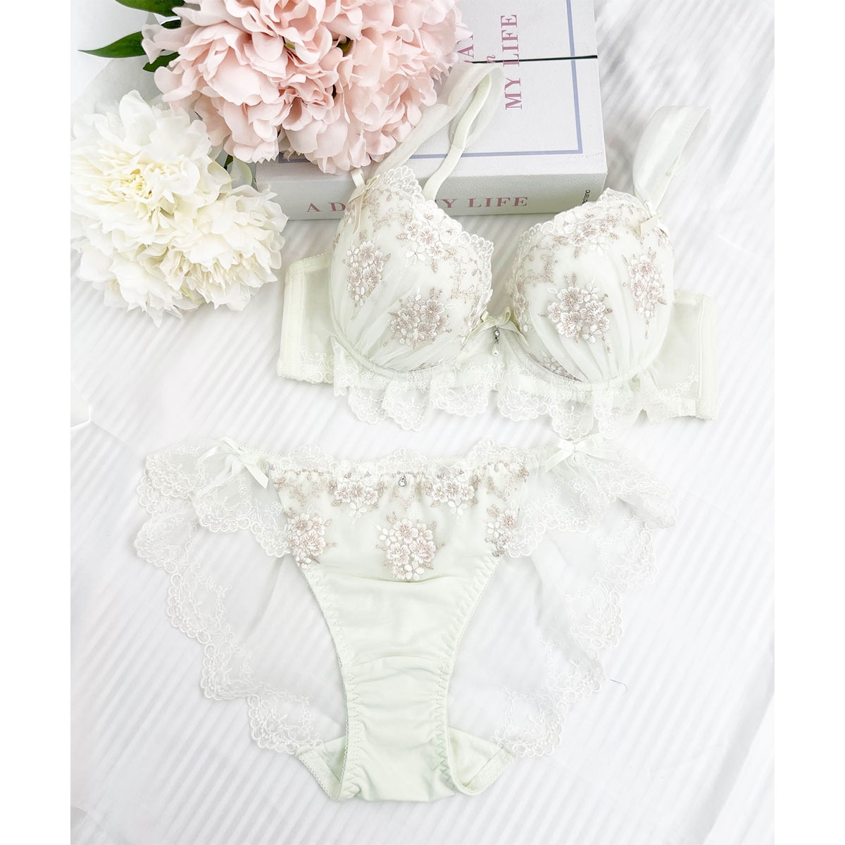 煌めく小花刺繍レースとひらめくフリルがロマンティックなブラ
