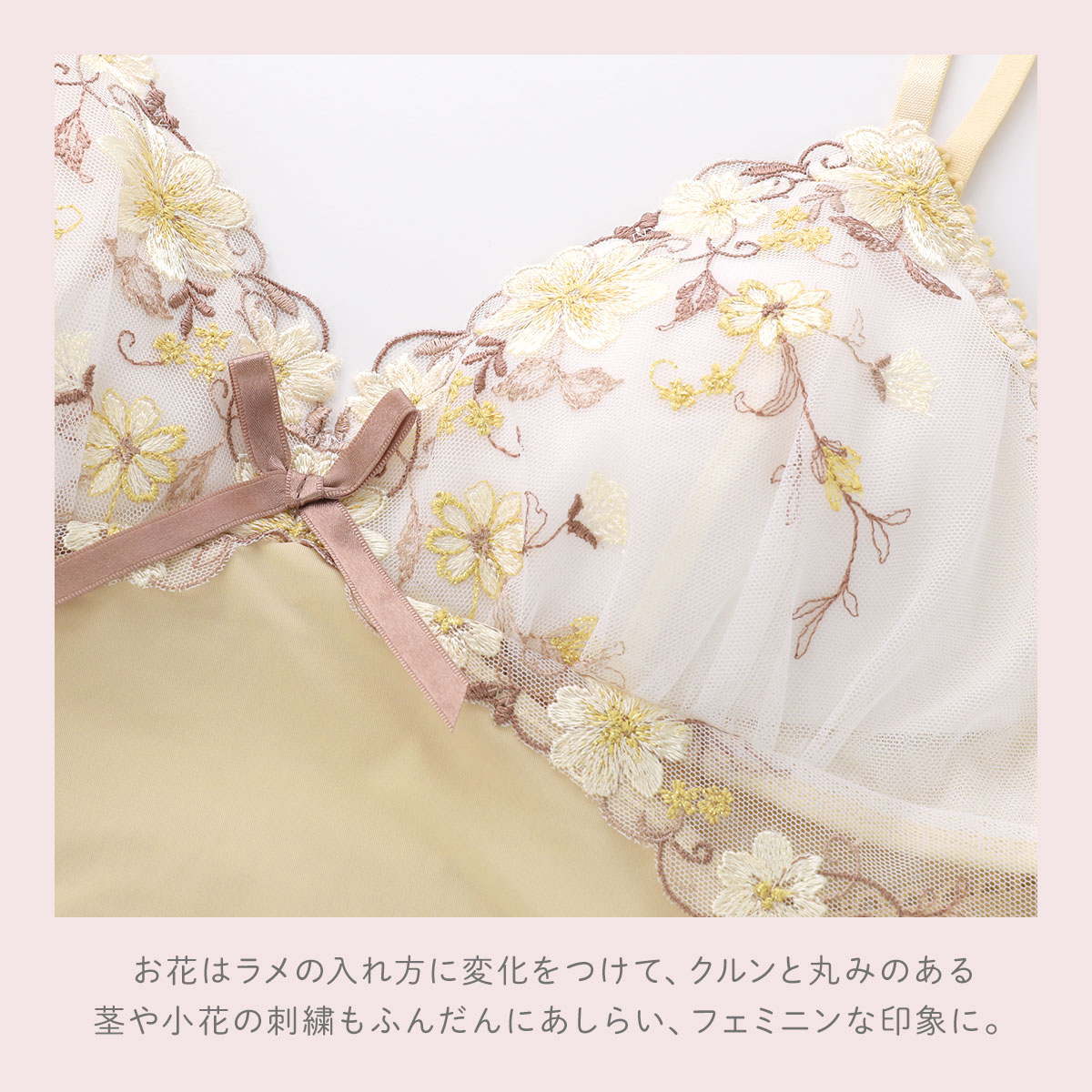 | 仕 様 | ・透感:レース部にあり ・カップ付き ・パッド取外し:可能 ・肩紐調節:可能 ・スリット:なし ※生地の使用部分により、柄の出方が異なる場合がございます。予めご了承ください。 |