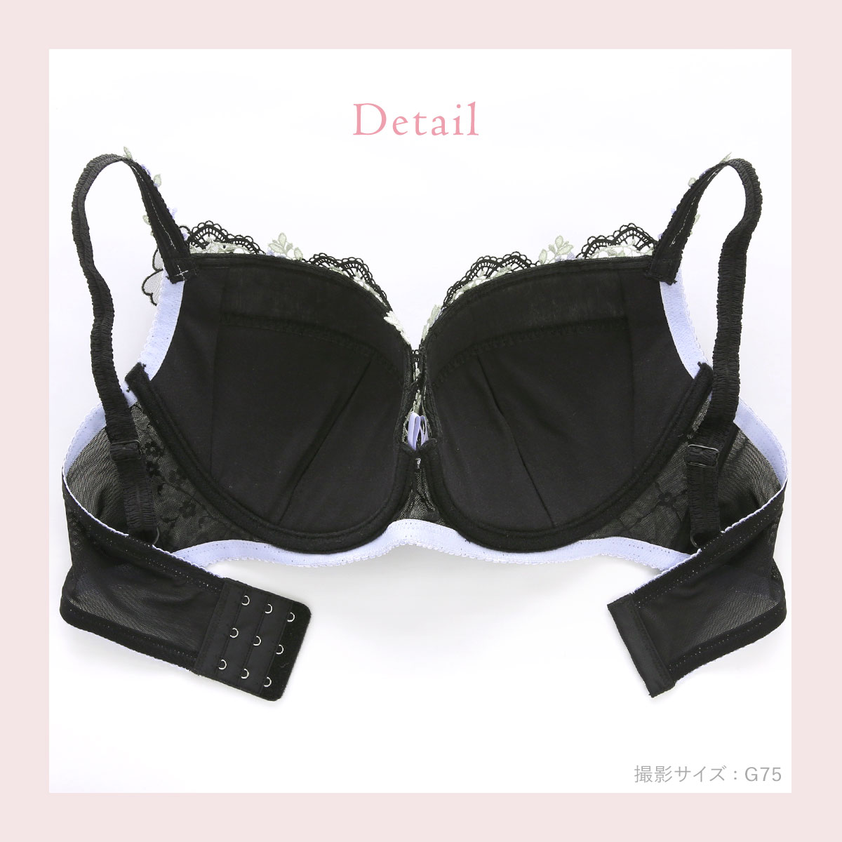 ボリュームのあるバストのためのグラマーブラ(バストアップタイプ)です。カップサイドのパネルで脇流れを防ぎしっかり固定。また、カップ中央部分にボーンを入れることにより、バストをしっかり支えてくれます。パッドポケット付きなので、お手持ちのパッドでボリュームを調整できます。ホックは3段3列なので安定感があります。