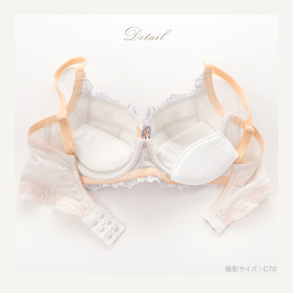 | 仕 様 | ・ホックの数:2段3列 ・3/4カップ ・パッド取外し:可能 ※サイズによってパッドの厚みや形が異なる場合がございます。 ・肩紐取外し:不可 ・ワイヤー入り ・サイドボーン:あり ・D Make Type