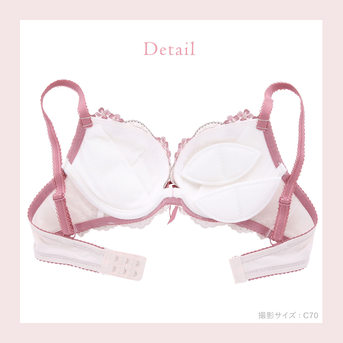 | 仕 様 | ・ホックの数:2段3列 ・3/4カップ ・パッド+サイドパッドのWパッド仕様 ・パッド取外し:両方可能 ・肩紐取外し:不可 ・L字ワイヤー入り ・サイドボーン:あり ・リサマリミラクル谷間ブラ