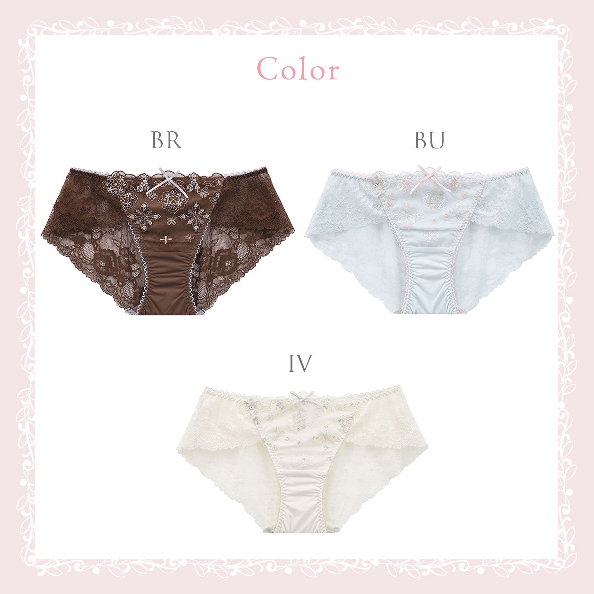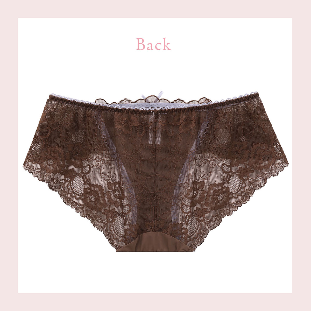 バック全体にレースをあしらったレースショーツ。繊細なレースを使用し、美しい透け感。伸縮性があるのでほどよくヒップにフィットします。通気性がよく、快適にご着用いただけます。