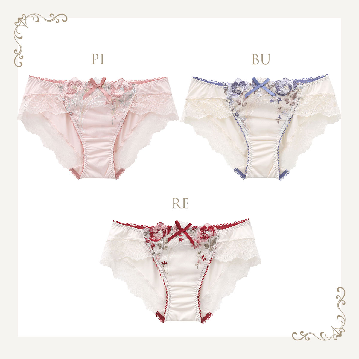 バラのお花と扇形模様を組み合わせた、リサマリレーヌ「サリー」コレクション。レース全体に咲きほこる大輪のバラは、大胆なカラーリングでインパクトを持たせつつも、女性らしい印象に。周りには様々な小花の刺繍をあしらい、可愛らしさをプラスしました。