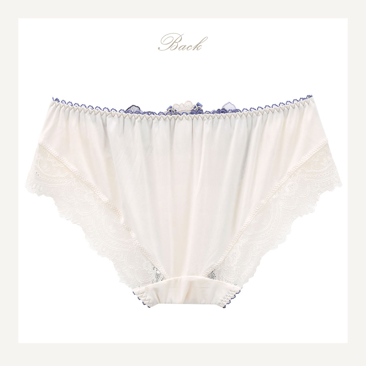 バックの身生地は、さらりとなめらかな肌あたりの素材です。縦横にストレッチ性があり、ヒップにフィットします。バック足口はレース付きで後ろ姿も華やかに。