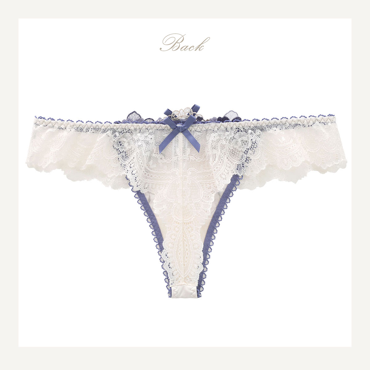 ウエストからバック部分にかけてレースを豪華にあしらったTバックショーツ。キュートなスカラップのレースがポイントです。ショーツのラインが気にならないためボトムスの種類を問わず幅広く着用いただけます。