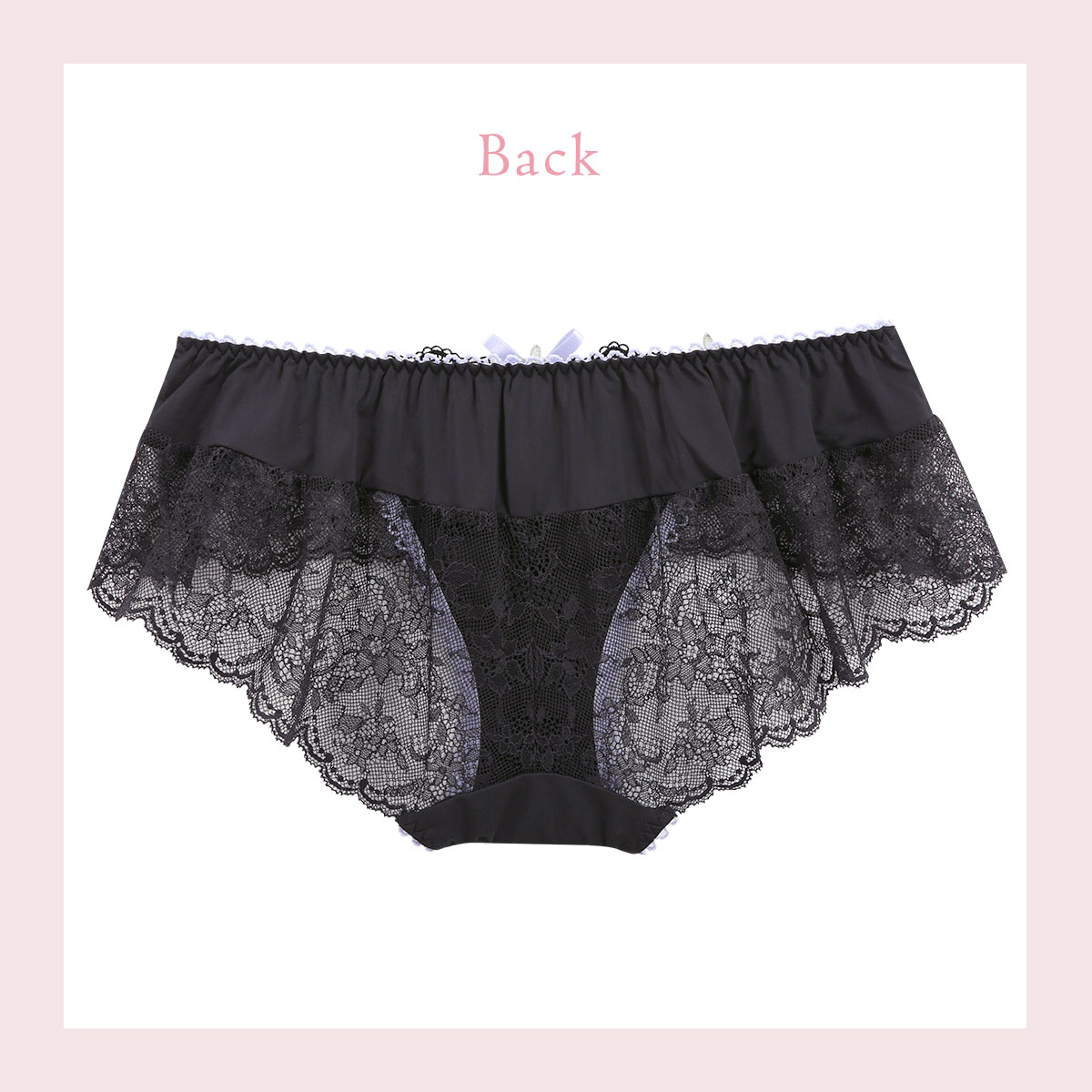 ふわりとレースが広がる、女の子らしいフレアなシルエットのショーツ。ウエストとフレアのメリハリでスタイルUP効果も。スカートやワイドパンツ等と合わせて着用いただくのがおススメです。