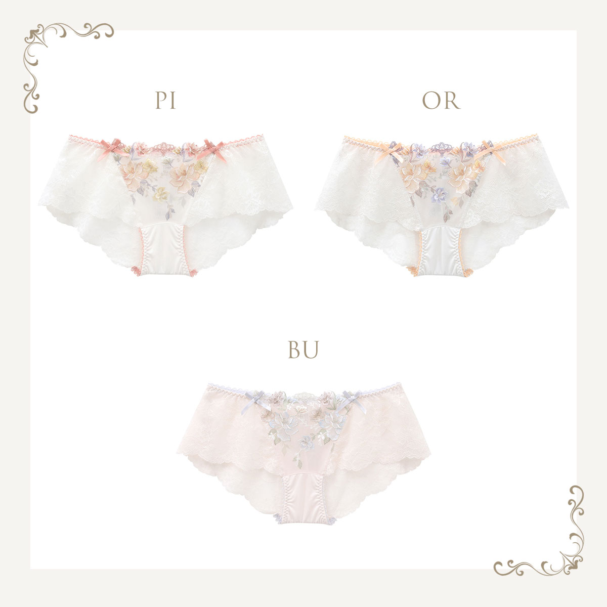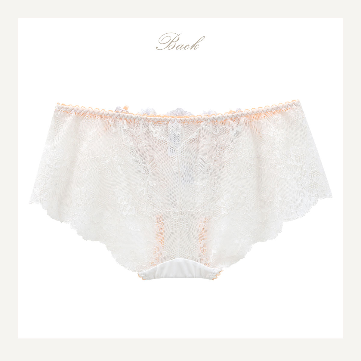 足口にはゴムを使っていないので、食い込みの苦手な方にもおすすめのヒップハングショーツ。伸縮性のある繊細なレースが肌に心地よくフィットします。ボトムスへもショーツラインが響きません。通気性がよく、快適にご着用いただけます。