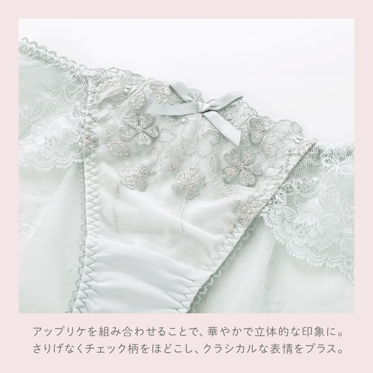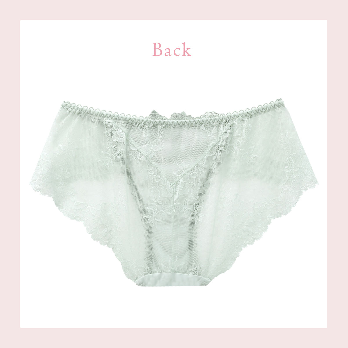 バック全体にレースをあしらったレースショーツ。繊細なレースを使用し、美しい透け感。伸縮性があるのでほどよくヒップにフィットします。通気性がよく、快適にご着用いただけます。