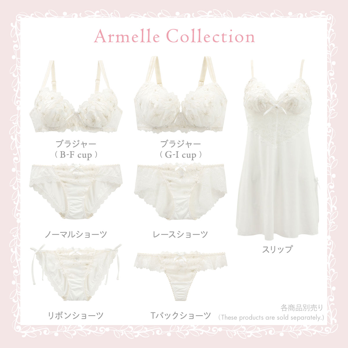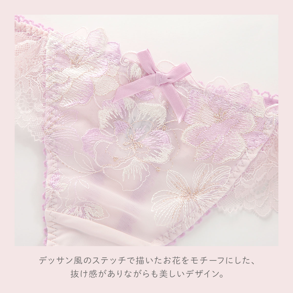 デッサン風のステッチで描いたお花をモチーフにした「アルメル」コレクション。ステッチの入れ方や絶妙なカラーのグラデーション加工にこだわり、抜け感がありながらも美しいデザインに仕上げました。花びら一枚一枚に光沢をほどこし、レースの立体感を演出しています。