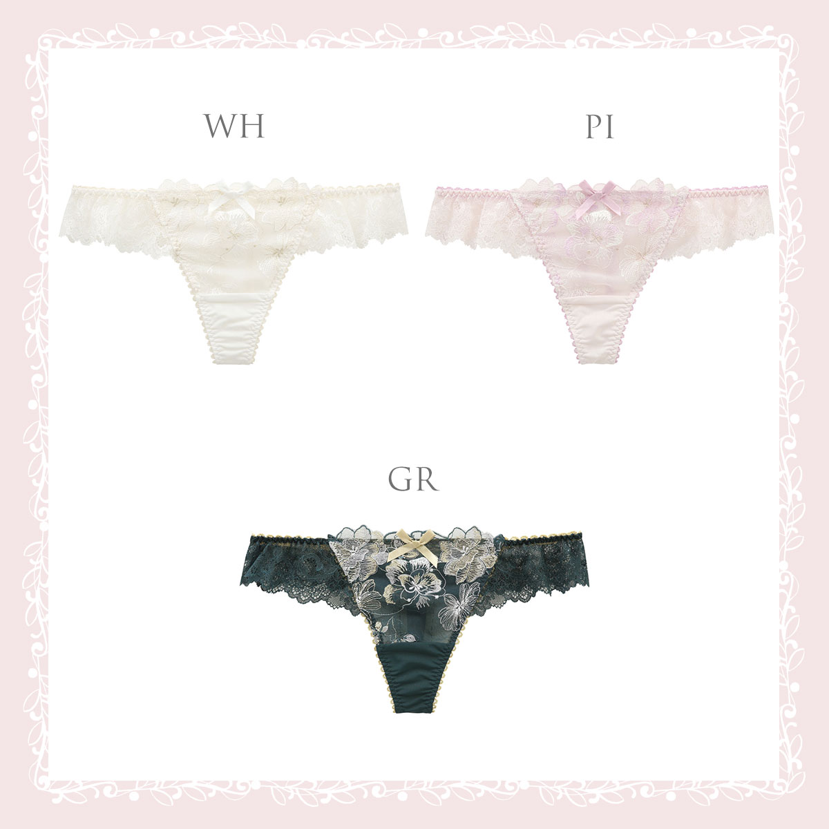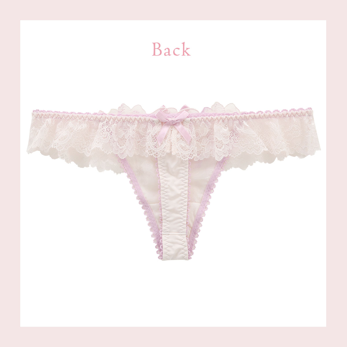 ウエスト部分にレースをあしらったTバックショーツ。透けるデザインがセクシーさをプラスしています。ショーツのラインが気にならないためボトムスの種類を問わず幅広くご着用いただけます。