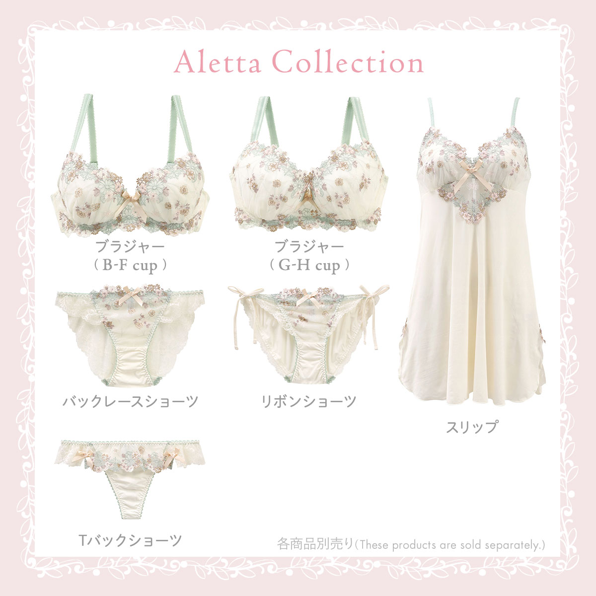 庭園に咲きほこる色とりどりの花々をイメージした「アレッタ」コレクション。揺れるように咲くたくさんの小花を散りばめて、まるでお花畑に包み込まれたような華やかな印象に仕上がりました。