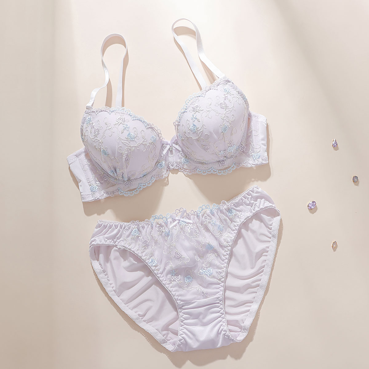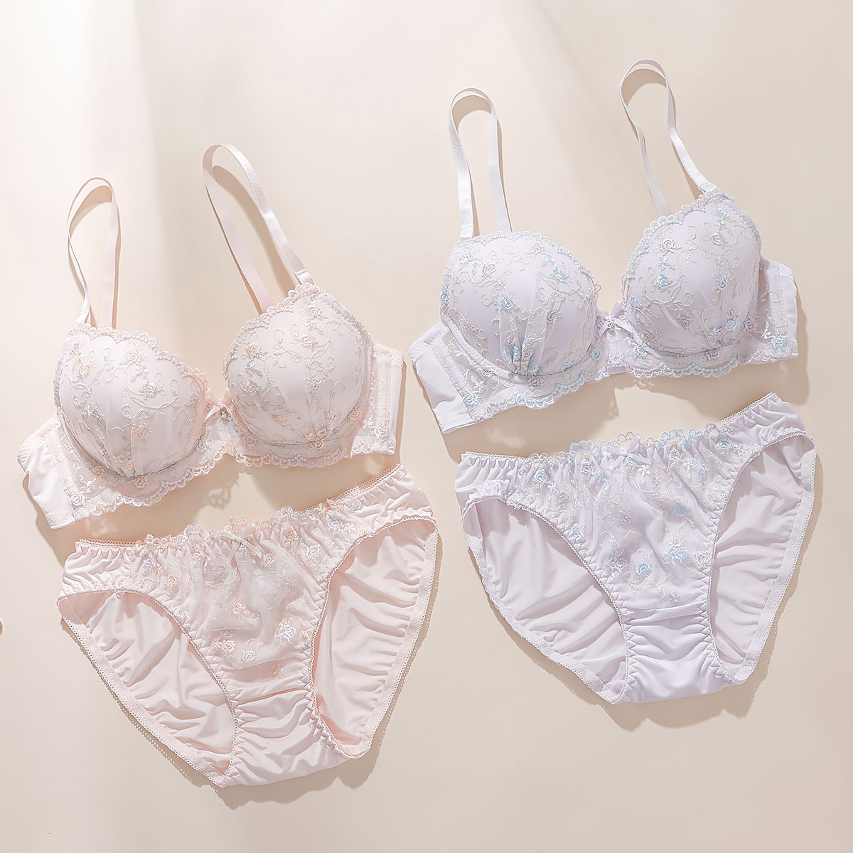 きらきら輝くラメ糸と香り立つような花柄刺繍に心華やぐ、デイリー使いにもおすすめのプチプラブラセットです。
