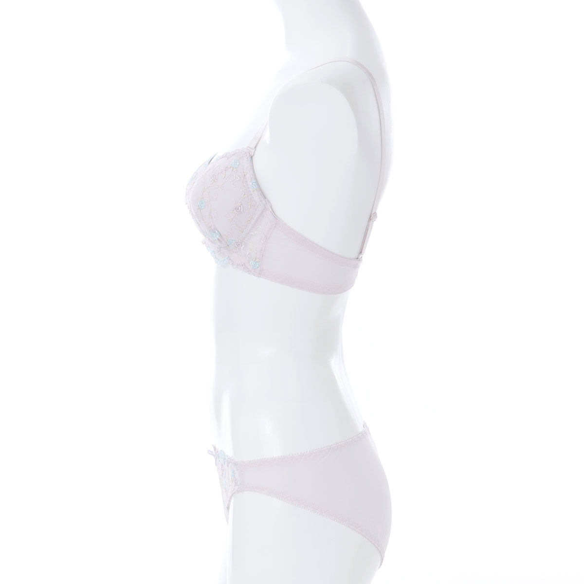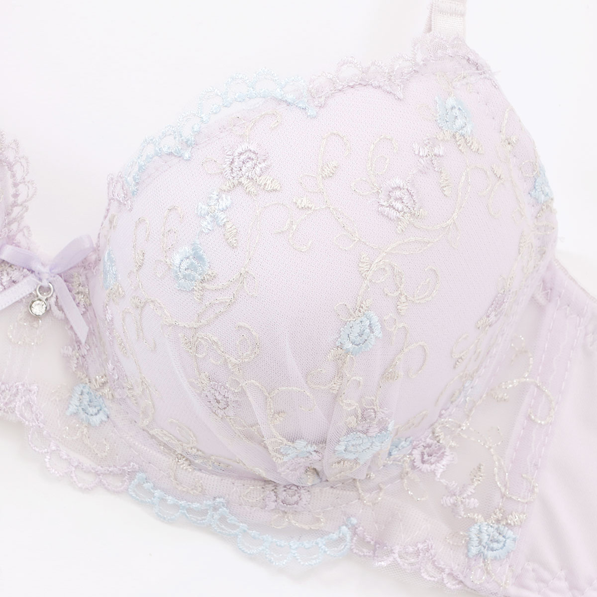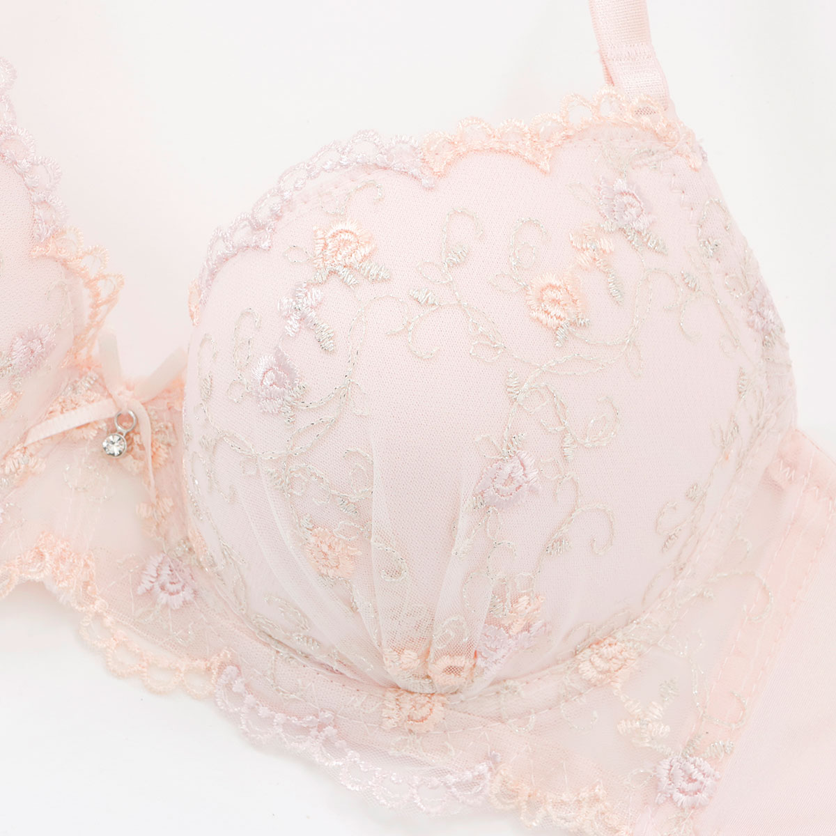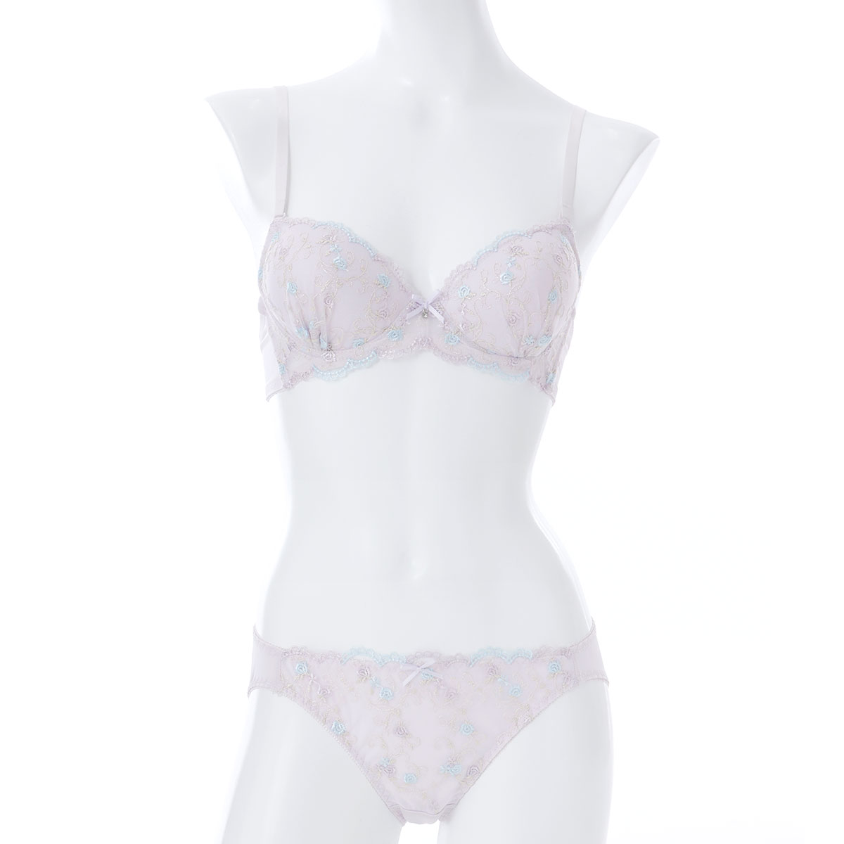 小さなローズ刺繍をいちめんにあしらった、おとなかわいいブラセット。