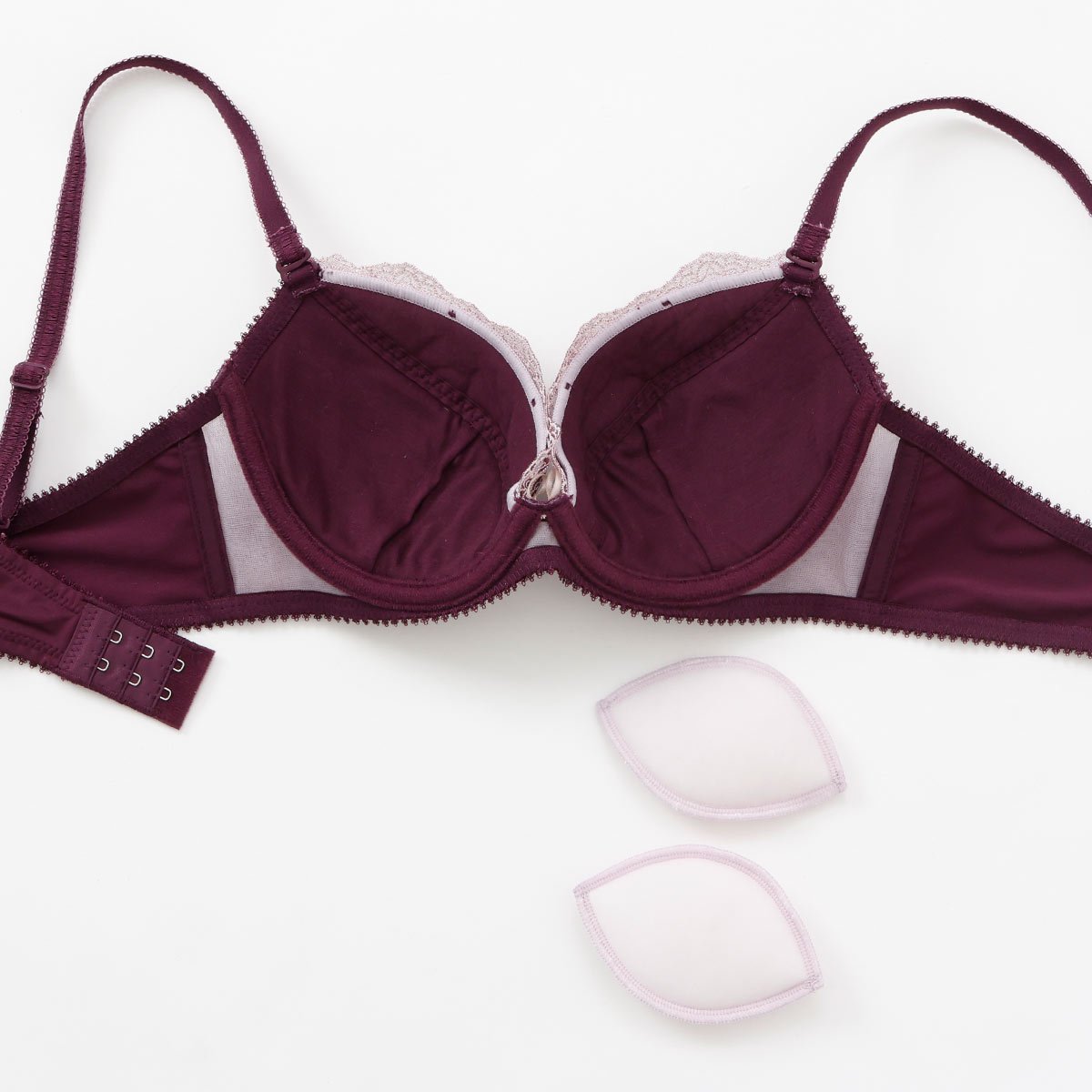 ブラジャーはナチュラルで安定感のあるつけごこち、自然にバストをメイクしてくれる「ナイスフィットパターン」を採用しています。カップ裏の薄手のパッドは取り外せるのでお好みでボリューム調整もOK◎