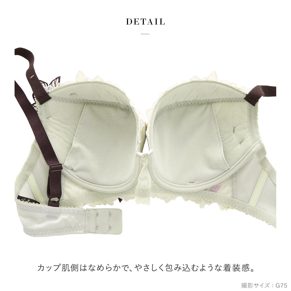 ワイヤーのカーブをやや狭く設計した絶妙なこだわりが、迫力のある谷間メイクの秘密。バストボリュームを中央へしっかり寄せて前へ押し出し、谷間の美しい魅力的な胸もとを演出します。