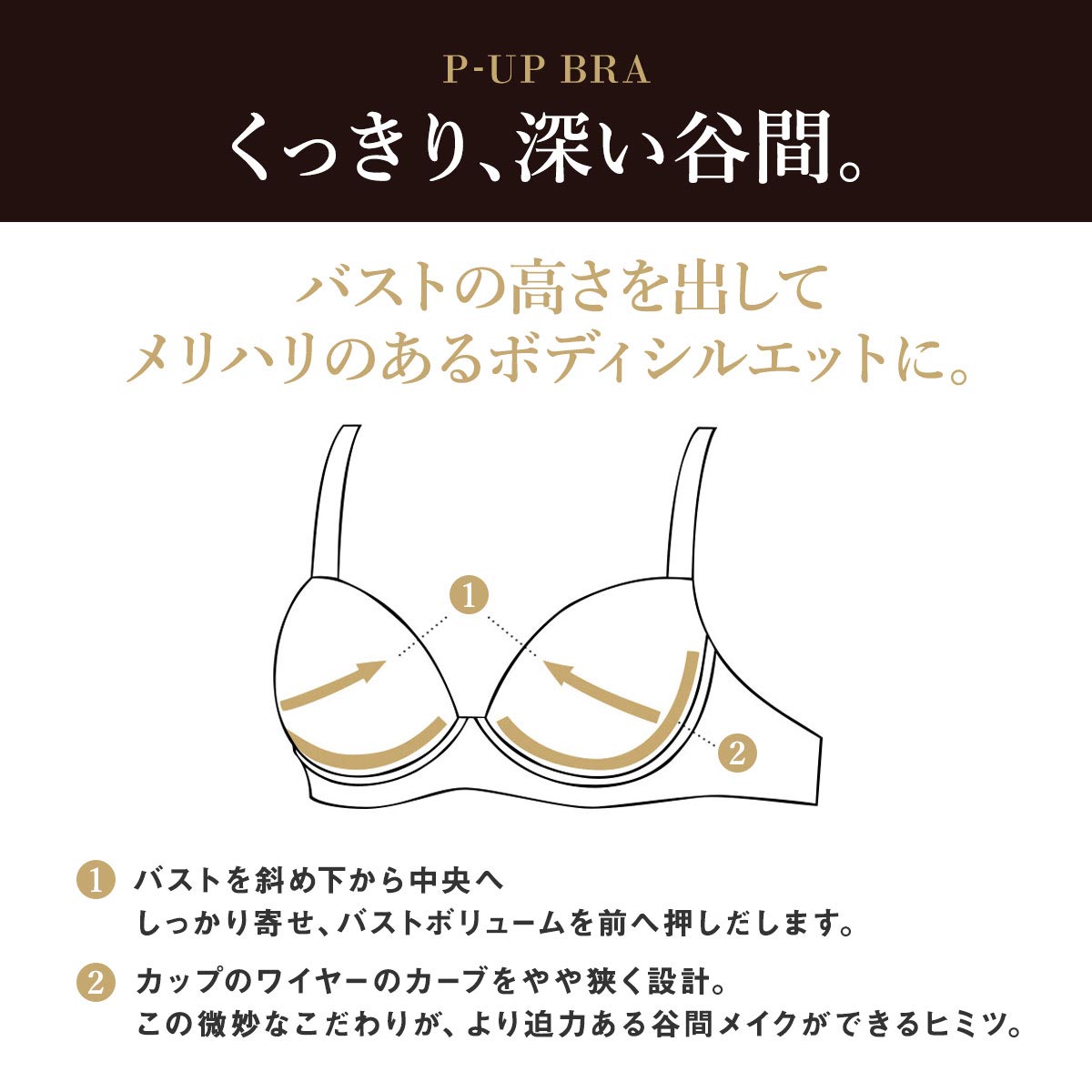 ブラパターンはくっきりと深い谷間をつくるP-UPタイプ。バストの高さを出してメリハリのあるシルエットに導きます。