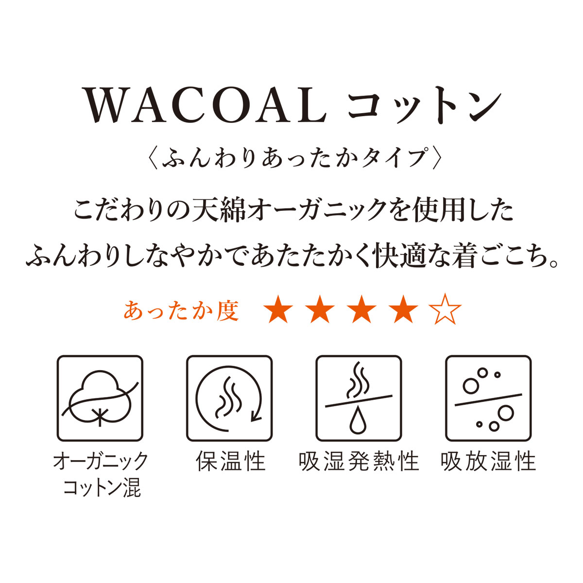 ワコール Wacoal ウイング Wing 綿の贅沢オーガニック 3分袖 あったかインナー 肌側綿100% 半袖 U首 吸湿発熱