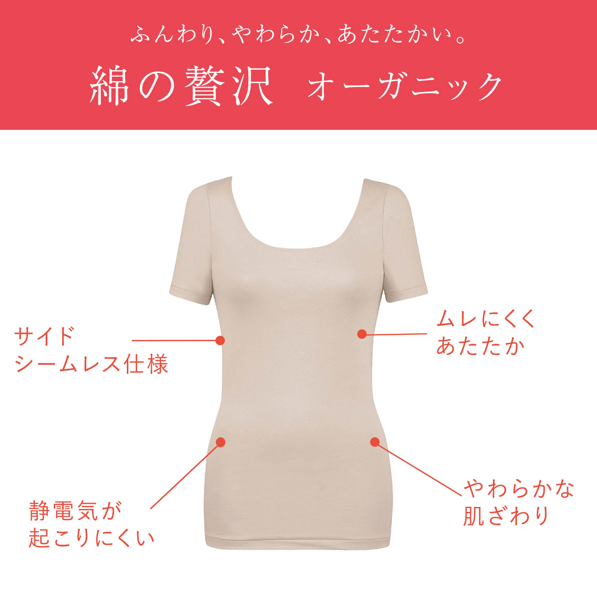 ワコール Wacoal ウイング Wing 綿の贅沢オーガニック 3分袖 あったかインナー 肌側綿100% 半袖 U首 吸湿発熱