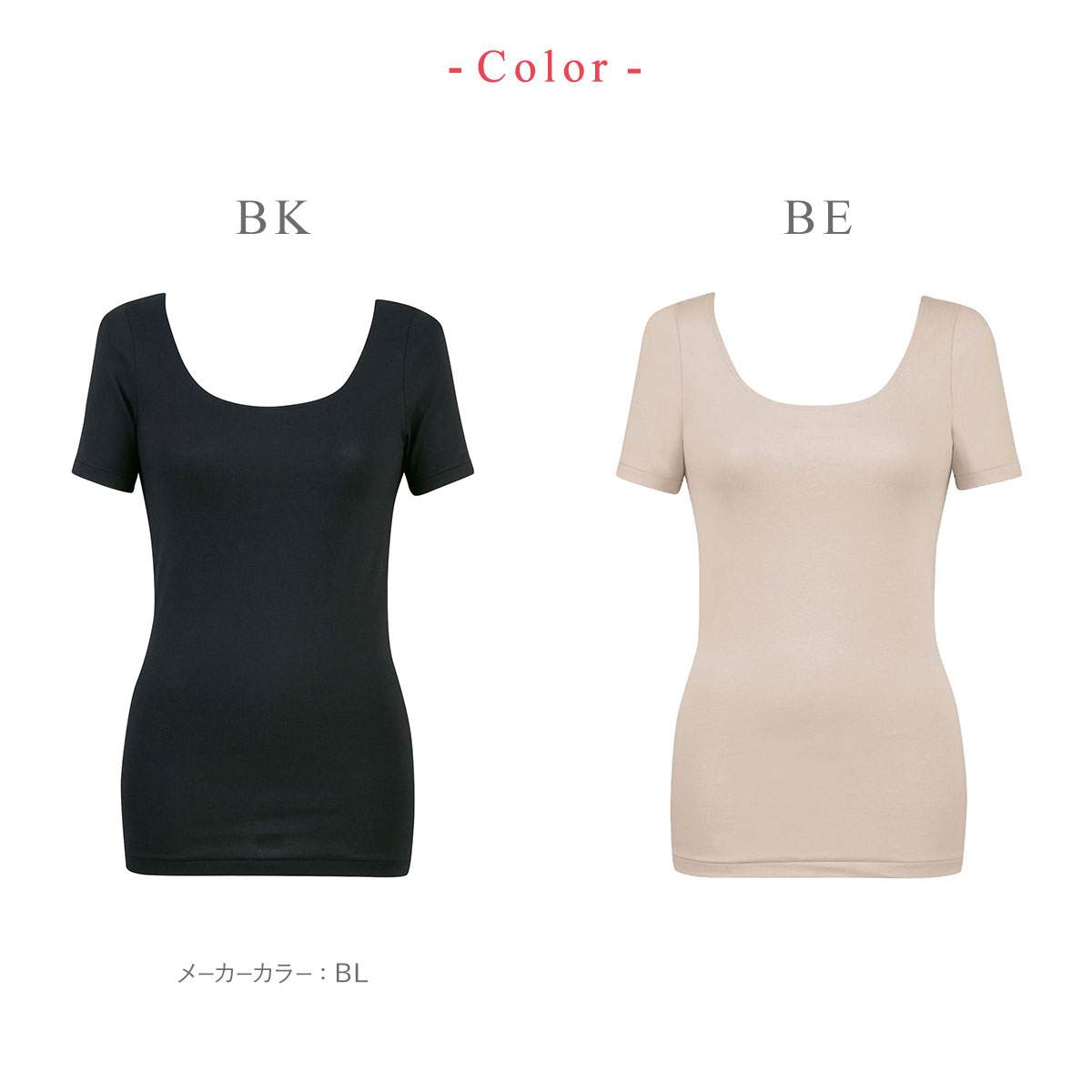 ワコール Wacoal ウイング Wing 綿の贅沢オーガニック 3分袖 あったかインナー 肌側綿100% 半袖 U首 吸湿発熱(BK-ブラック-M)
