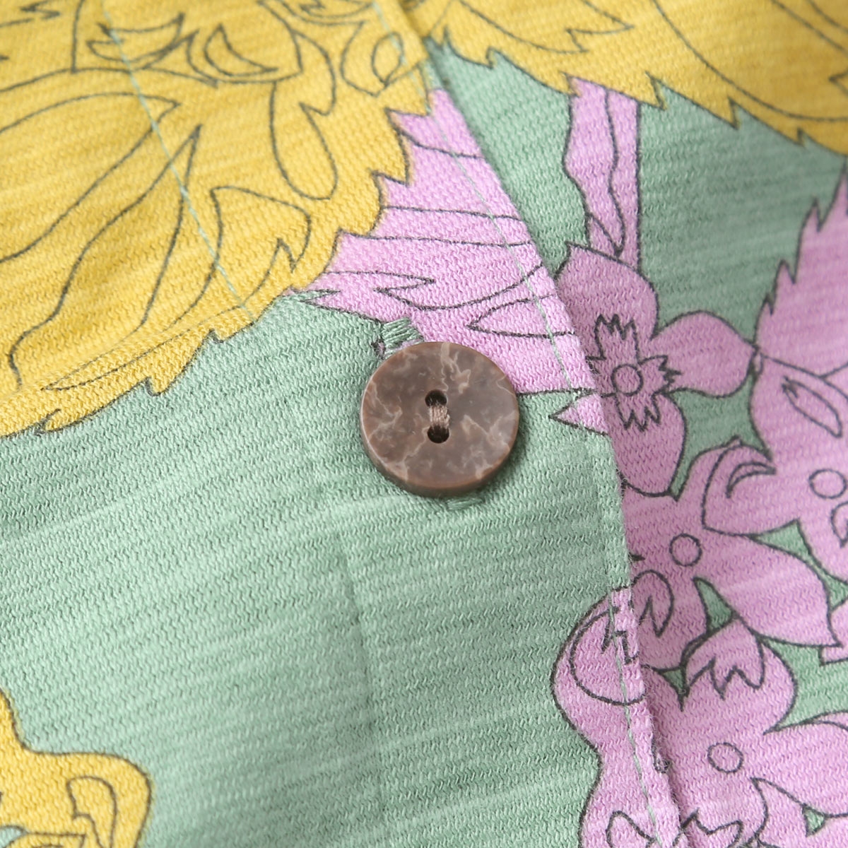 少しフシ(糸節)の見える生地感が特徴で、やさしい肌ざわりの綿100%の天竺素材を使用したシャツパジャマ上下セットです。