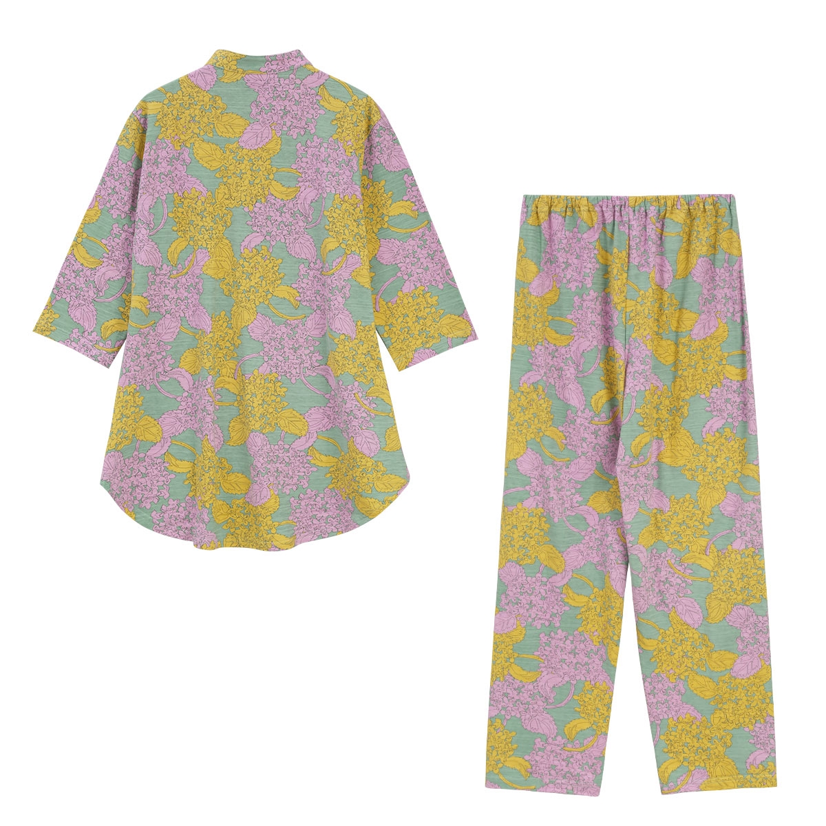 クリエーター俣野温子氏がデザインする、甘くなりすぎない大人かわいいテキスタイルとカラーで、くつろぎ時間を楽しく過ごせるパジャマ&ルームウェア