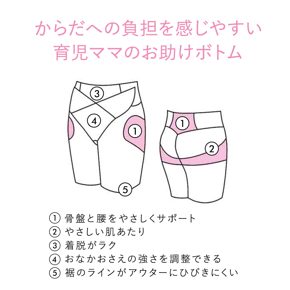 からだへの負担を感じやすい、育児ママのお助けボトム【サッとはける、産後骨盤サポートパンツ】です。