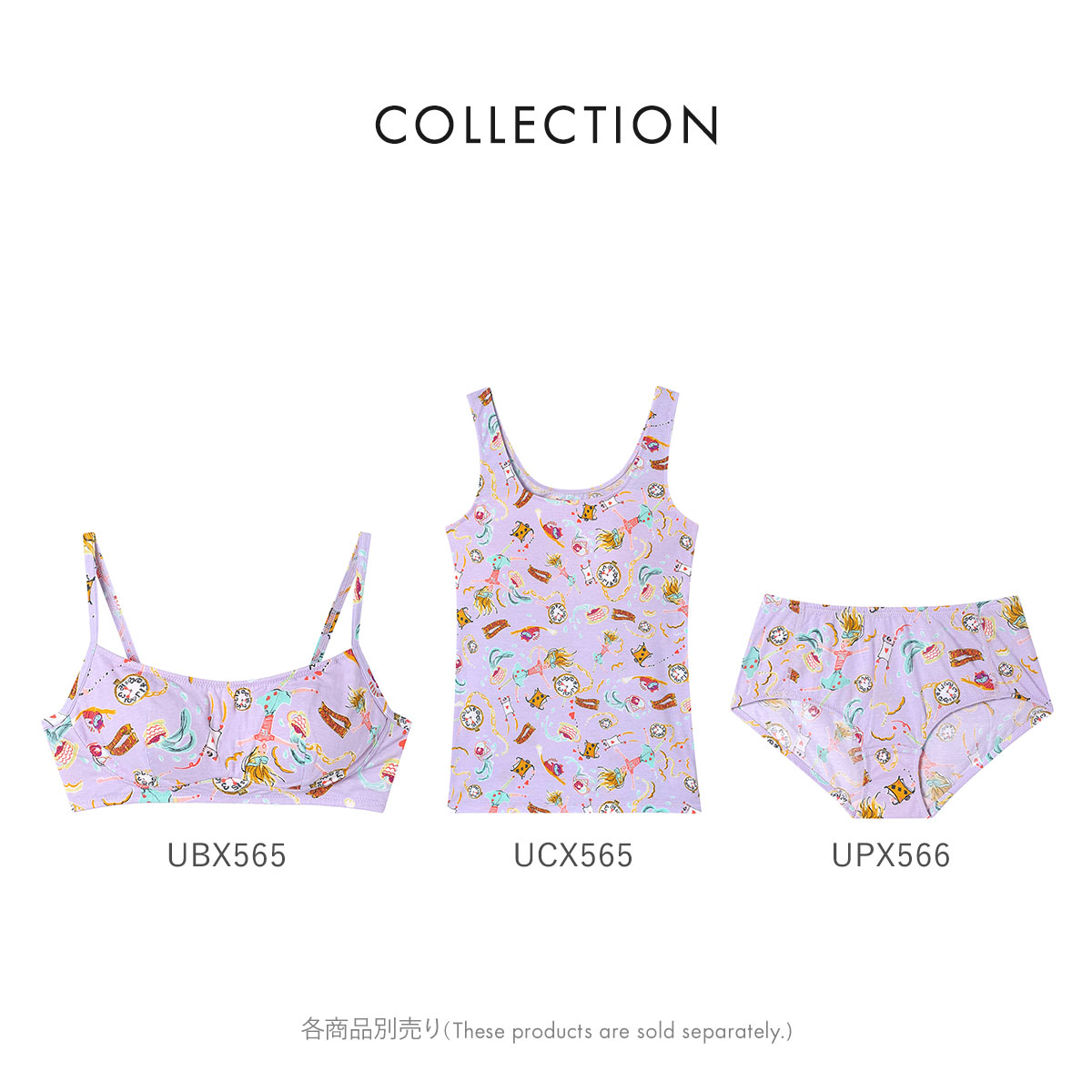 伸縮性がよくやわらかい綿混ベア天竺素材を使用しています。薄手のストレッチ生地が軽やかな着け心地で、ストラップも同素材を使用しているのでやわらかな肌あたりです。