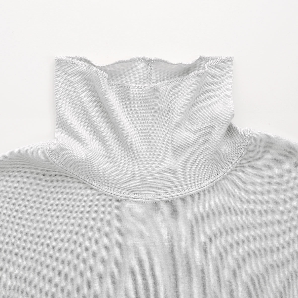 パジャマの下に着るアンダーウエアとして人気のアイテム。熱が逃げないよう、ほどよくフィットさせた首もと。