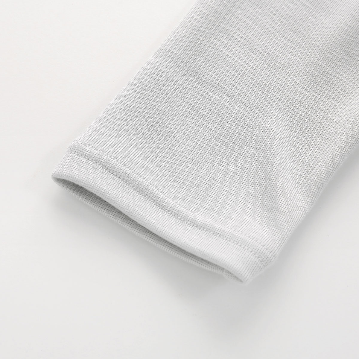 パジャマの下に着るアンダーウエアとして人気のアイテム。熱が逃げないよう、ほどよくフィットさせた首もと。