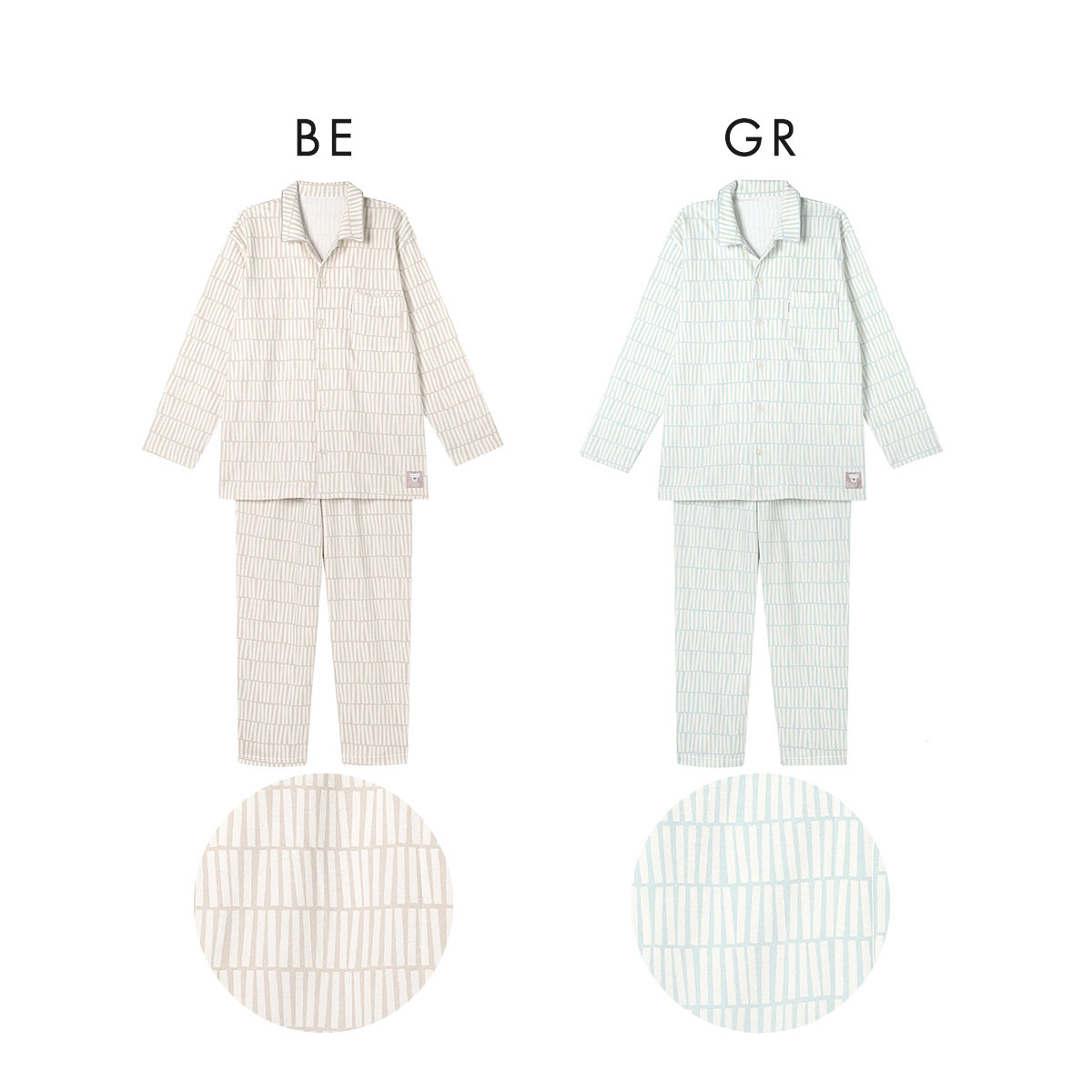 SOU・SOU柄がおしゃれなパジャマ上下セットです。綿100%のエイトロック素材を本体に使用。8の字を描くように編まれており、空気を含みやすくあたたかな着ごこち。