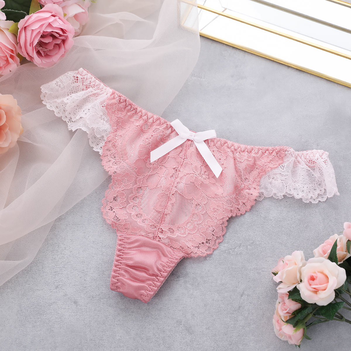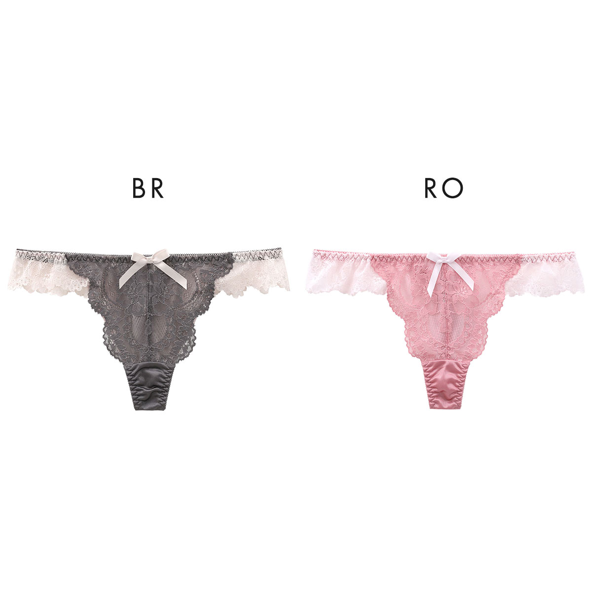 配色レースにリボンをあしらった、フェミニンでちょっぴり大人っぽい雰囲気のTバックショーツ。