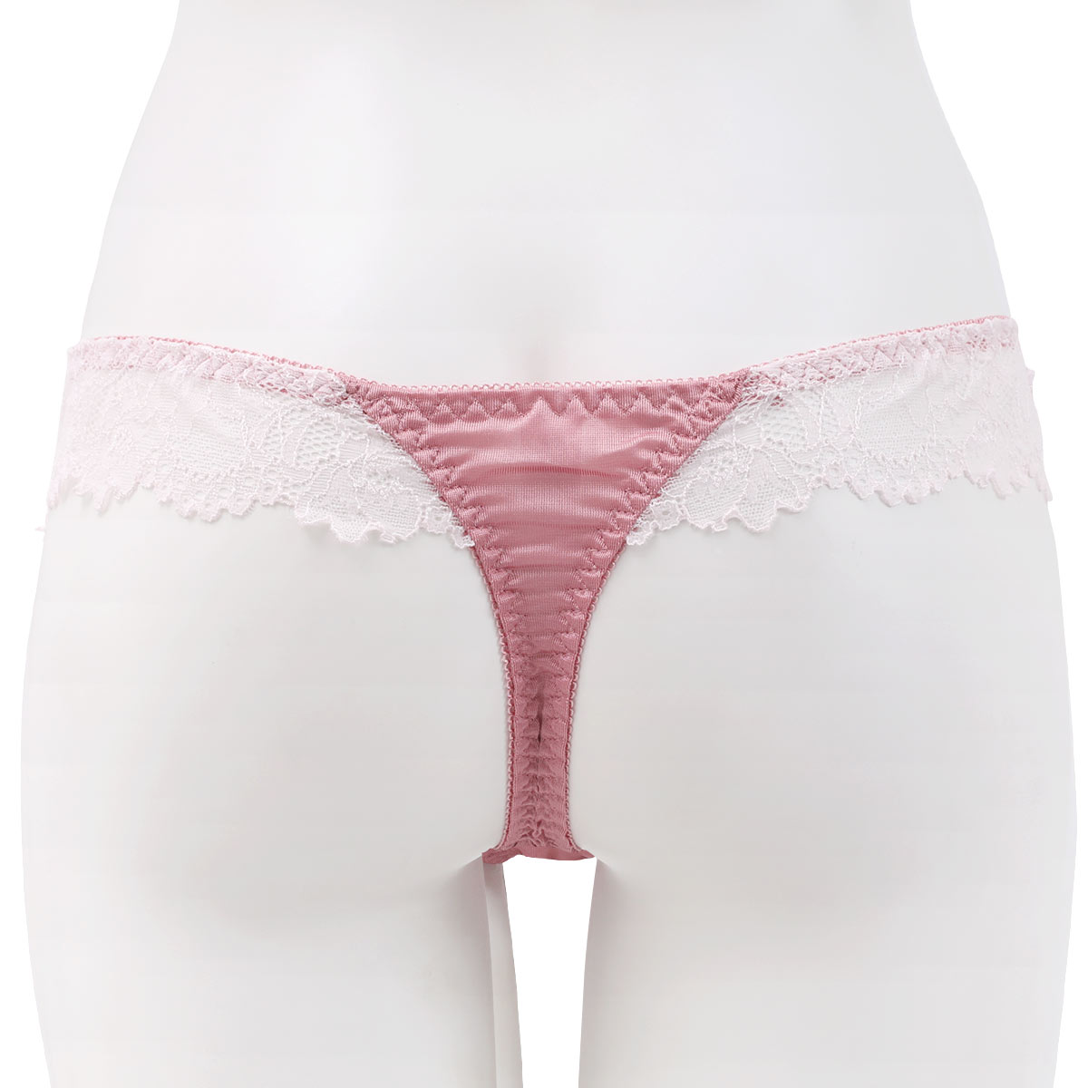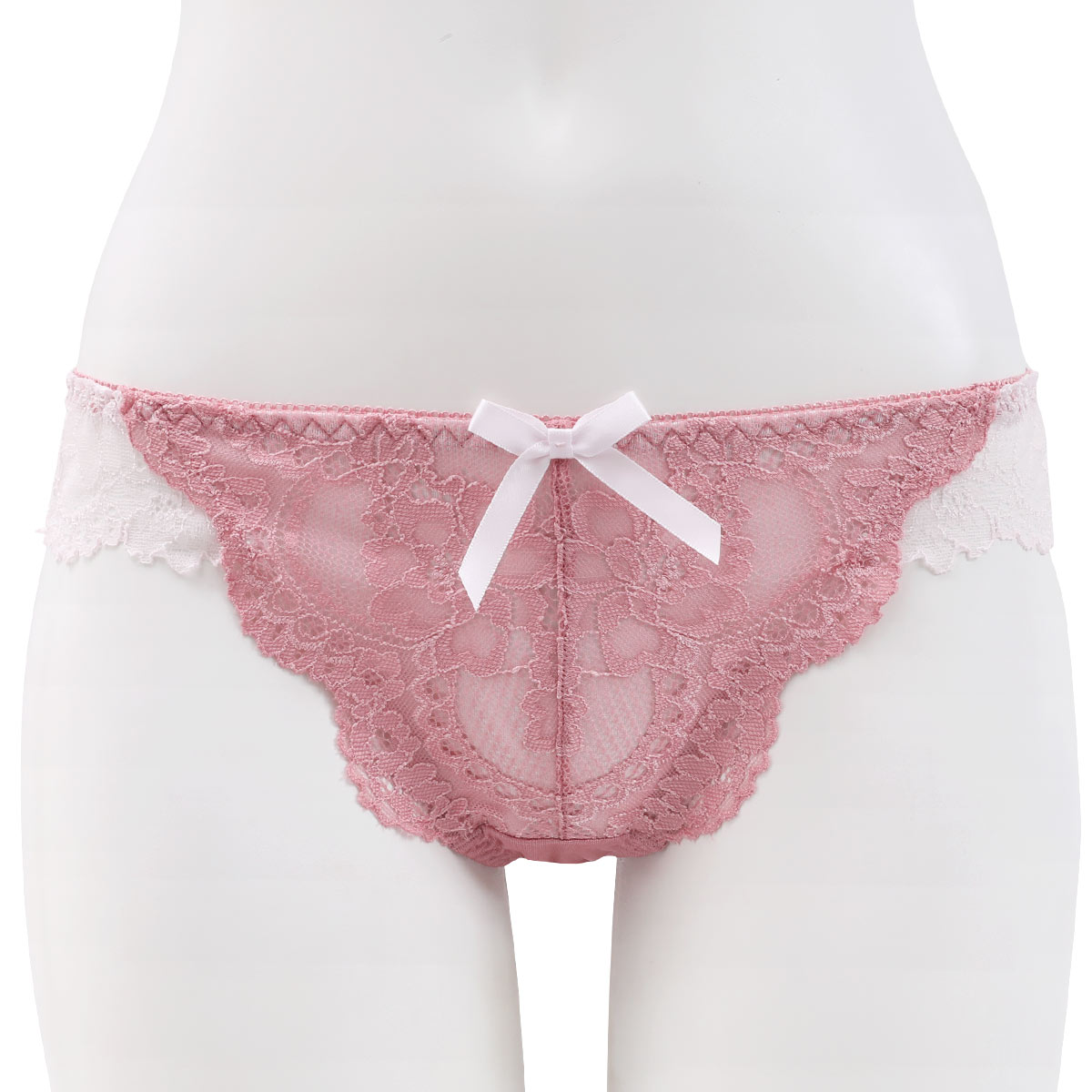 配色レースにリボンをあしらったフェミニンなTバックショーツ