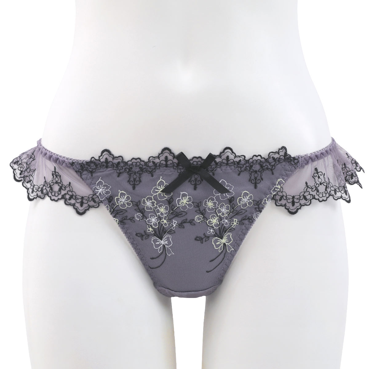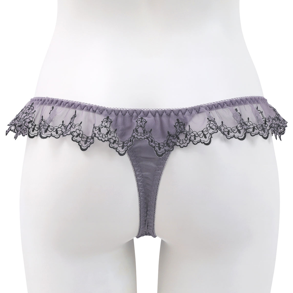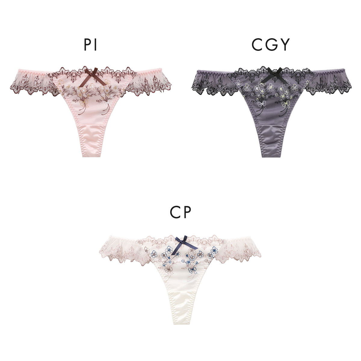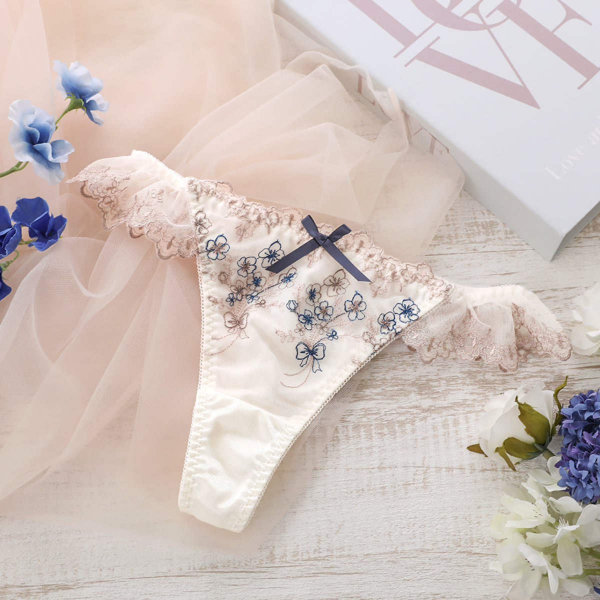 煌めく小花刺繍レースがフェミニンなウエストフリルTバック