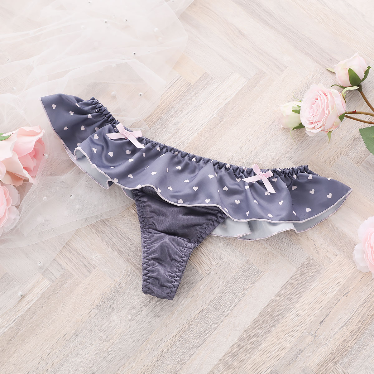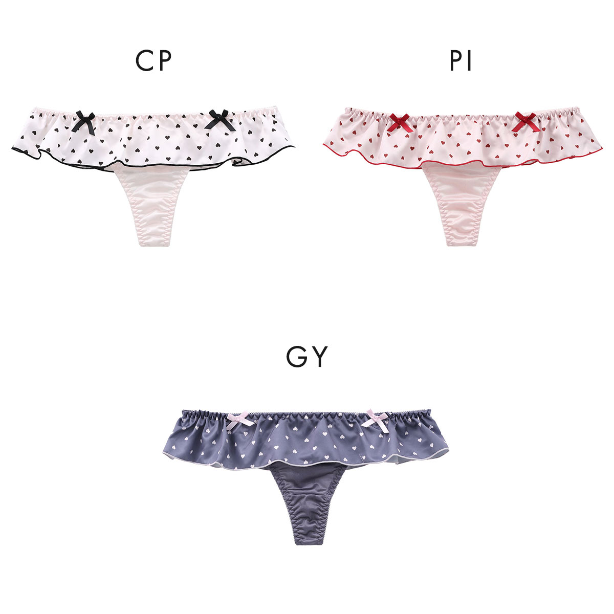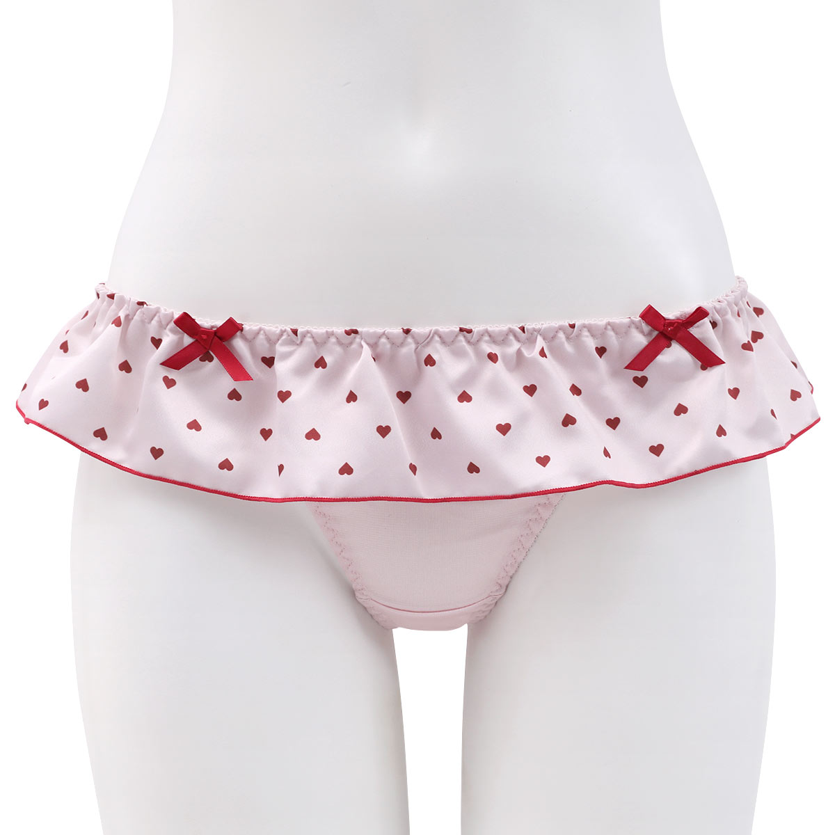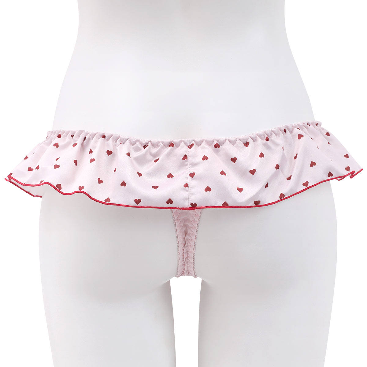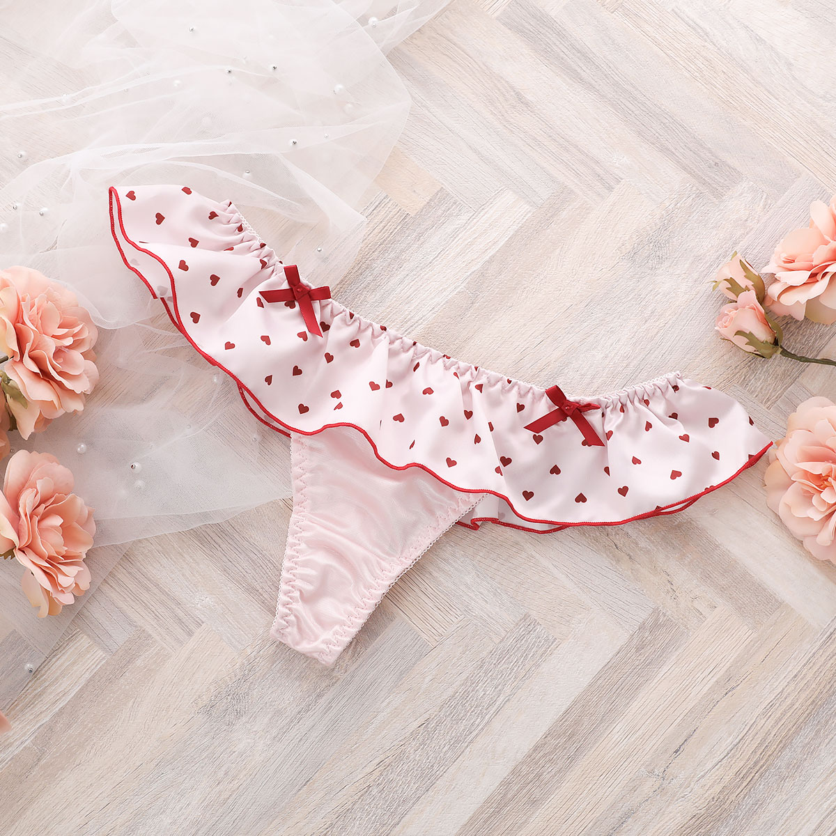 ハート柄サテンフリルが可愛らしいTバックショーツ