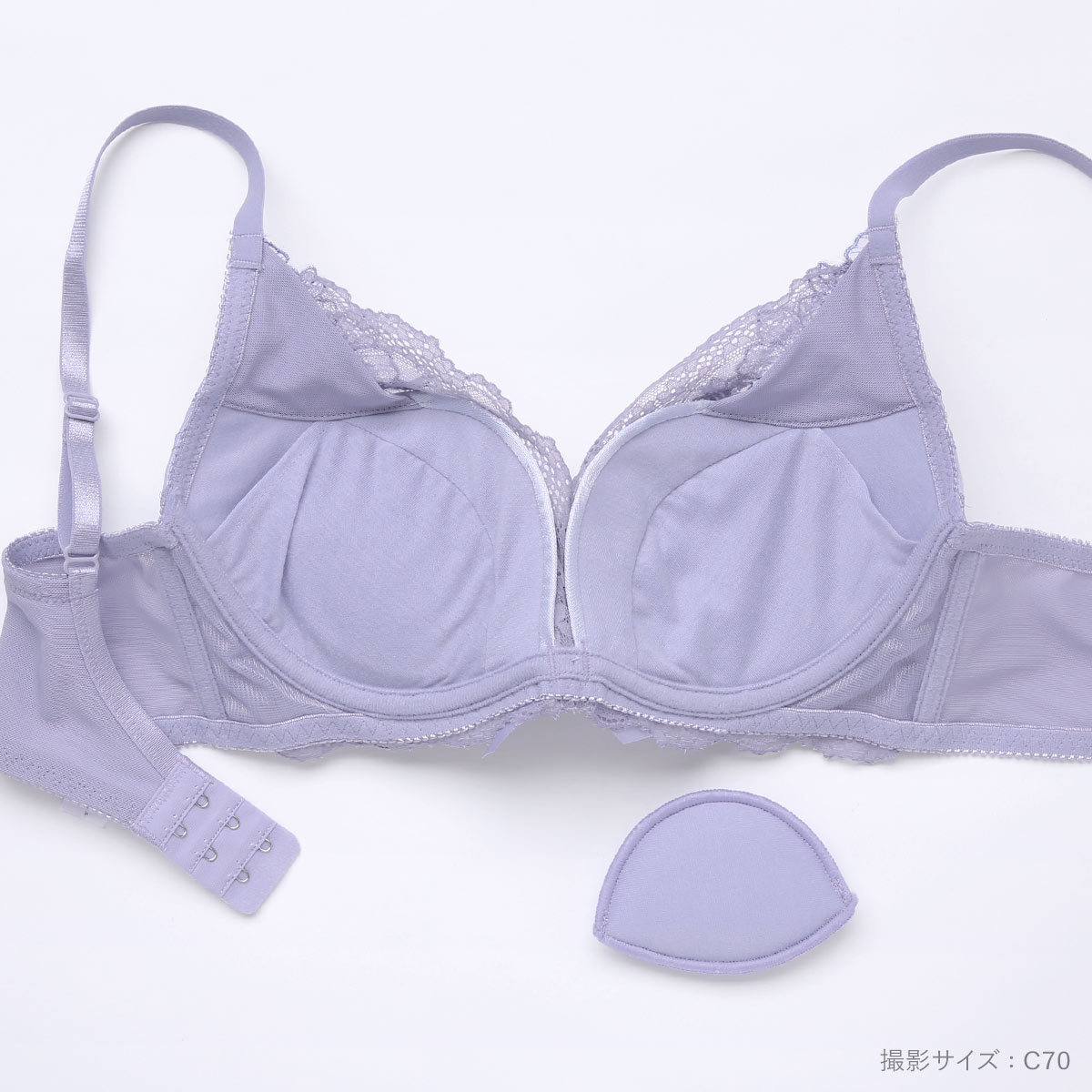 カップパターンは、丸みのきれいなシルエットをメイクするモールドカップを採用しています。取り外し可能なパッドがついているので、しっかりボリュームアップさせてくれます。