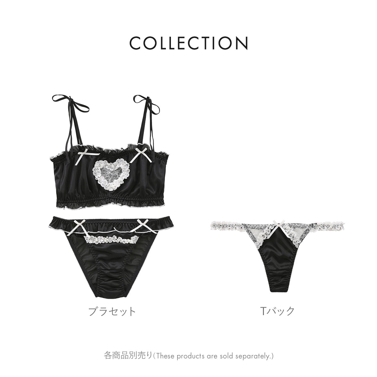 ココランジェ ラブリーハートサテン ノンワイヤー ブラジャー ショーツ セット COCO Linge(BK-ブラック-M/M)